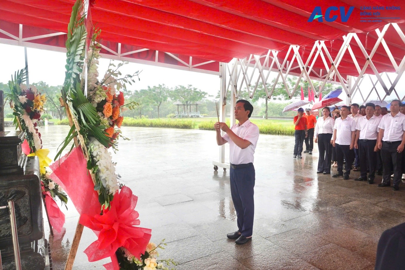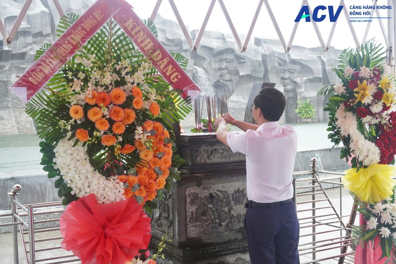 Đồng chí Nguyễn Thành Nam – Bí thư Đảng uỷ và Đoàn công tác của Đảng bộ Cảng HK Đồng Hới dâng hương, dâng hoa tại Tượng đài Mẹ Việt Nam Anh Hùng Nguyễn Thị Thứ