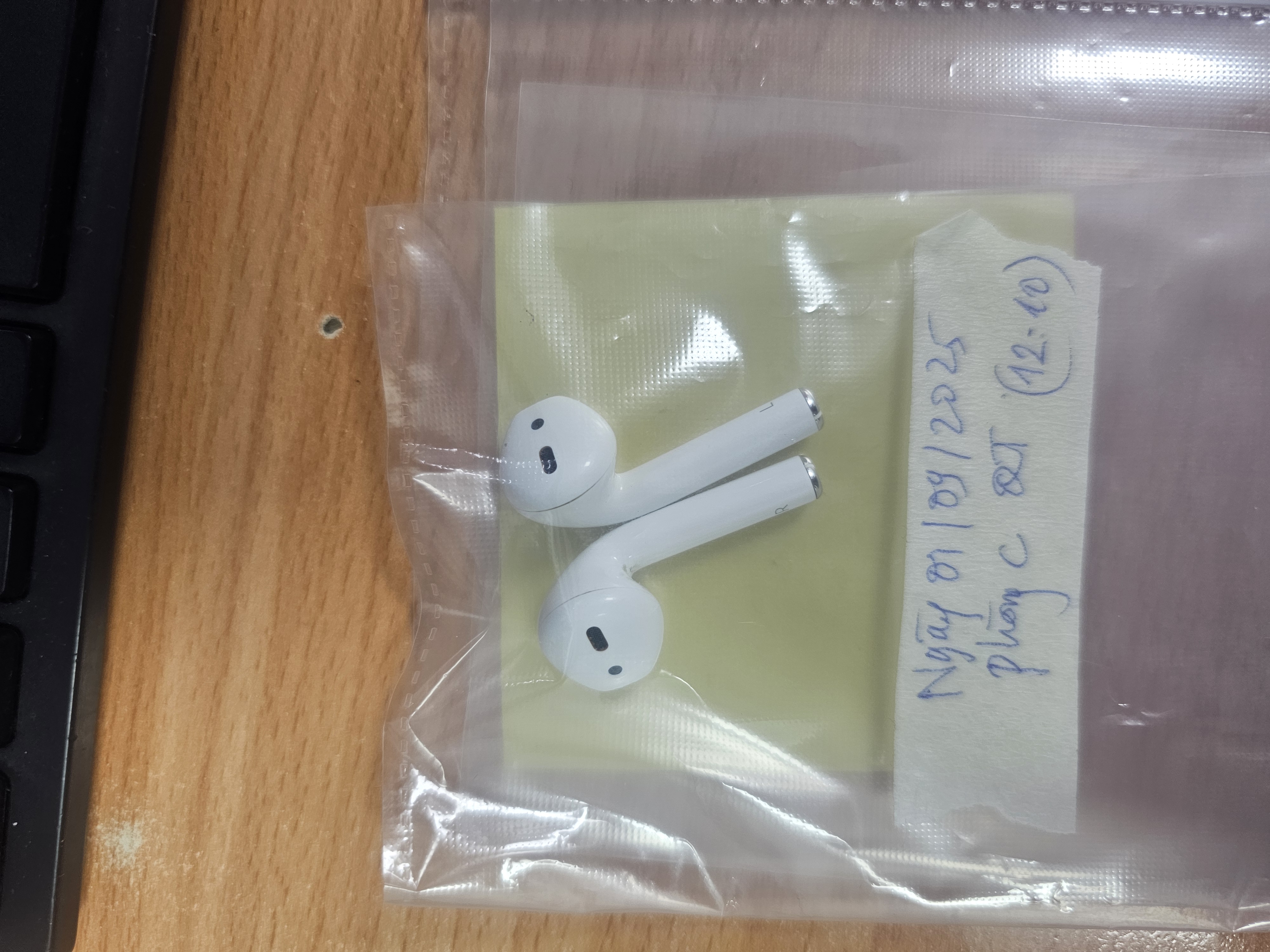 01 cặp tai nghe màu trắng, được tìm thấy tại Phòng chờ cách ly quốc tế vào ngày 01/09/2025