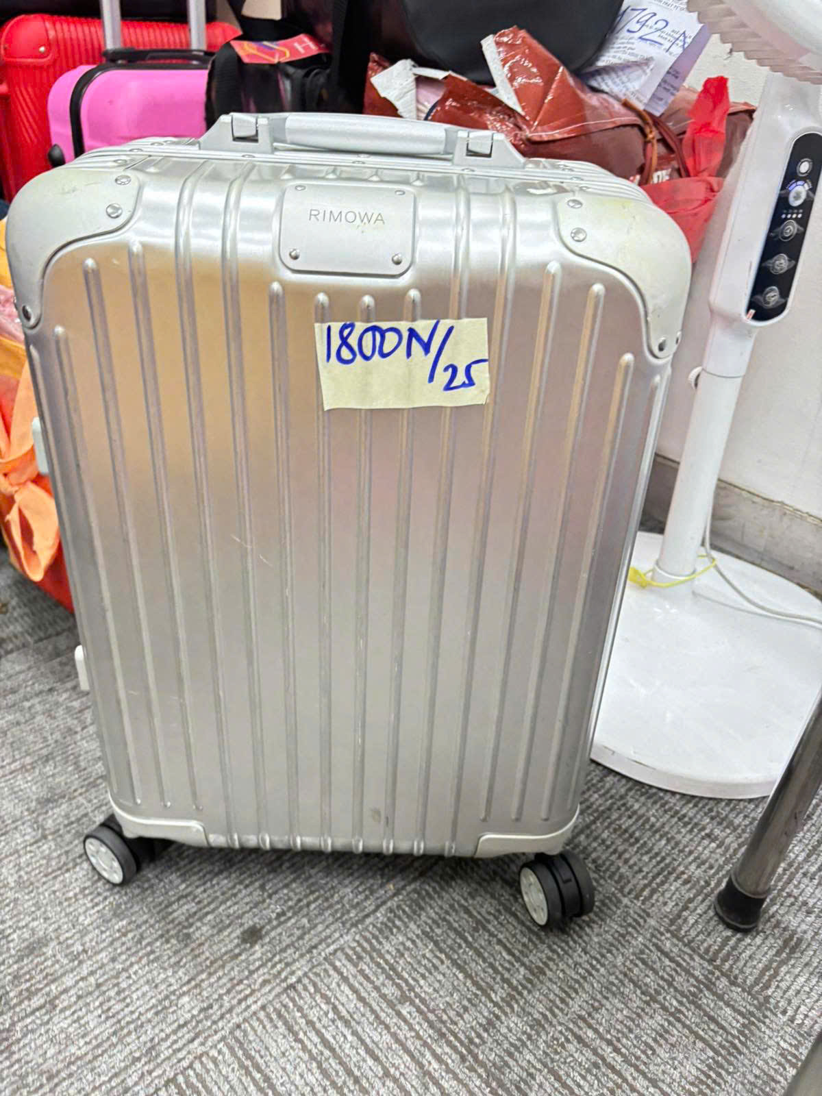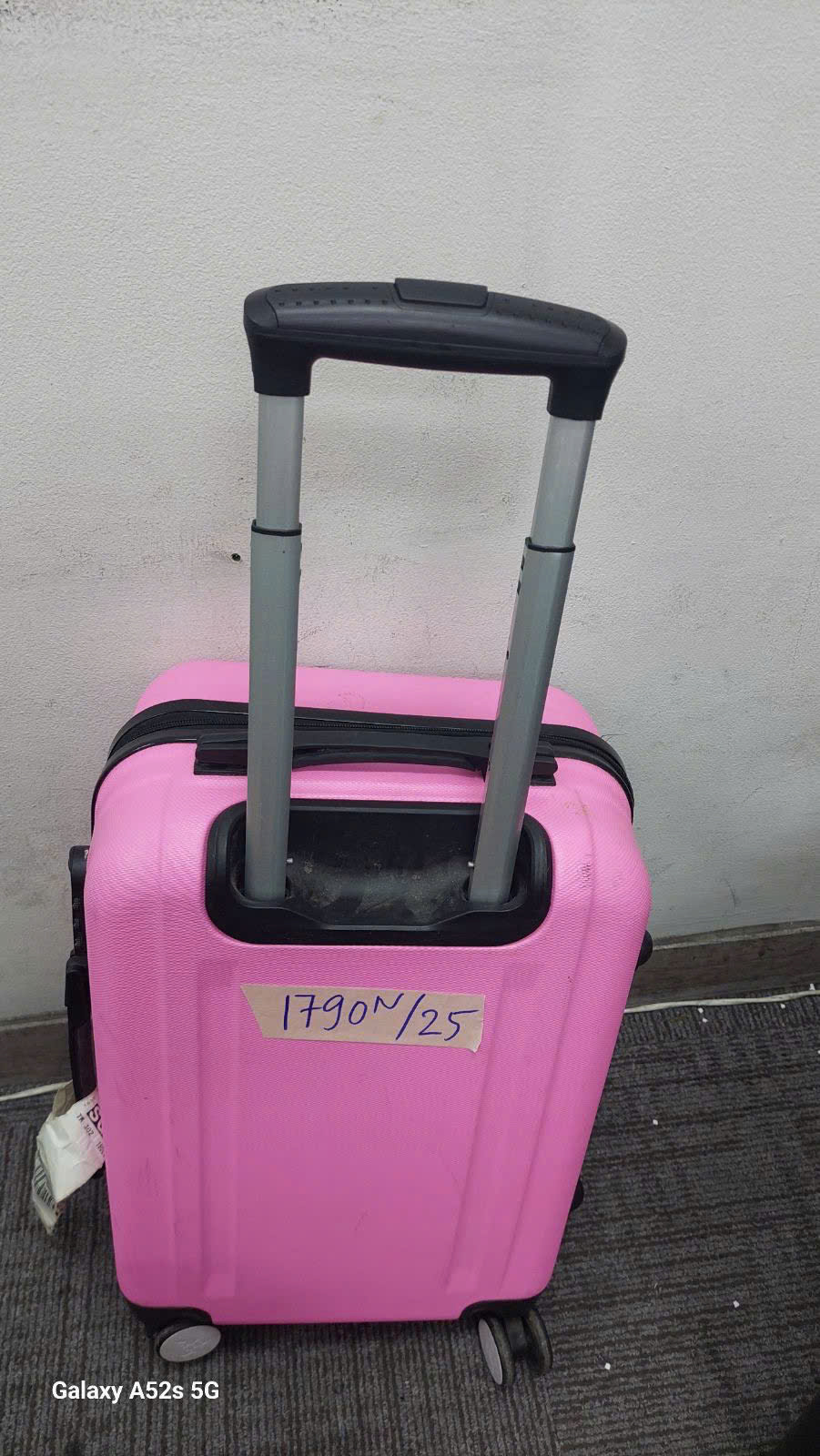 Mô tả: 01vali nhựa màu hồng có quần áo và đồ dùng cá nhân đã qua sử dụng.