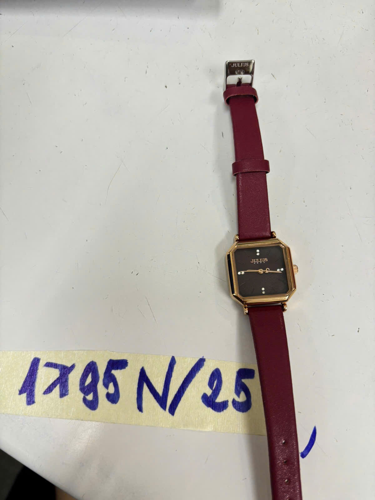 Mô tả: 01 đồng hồ đeo tay kim loai hình vuông "julius".