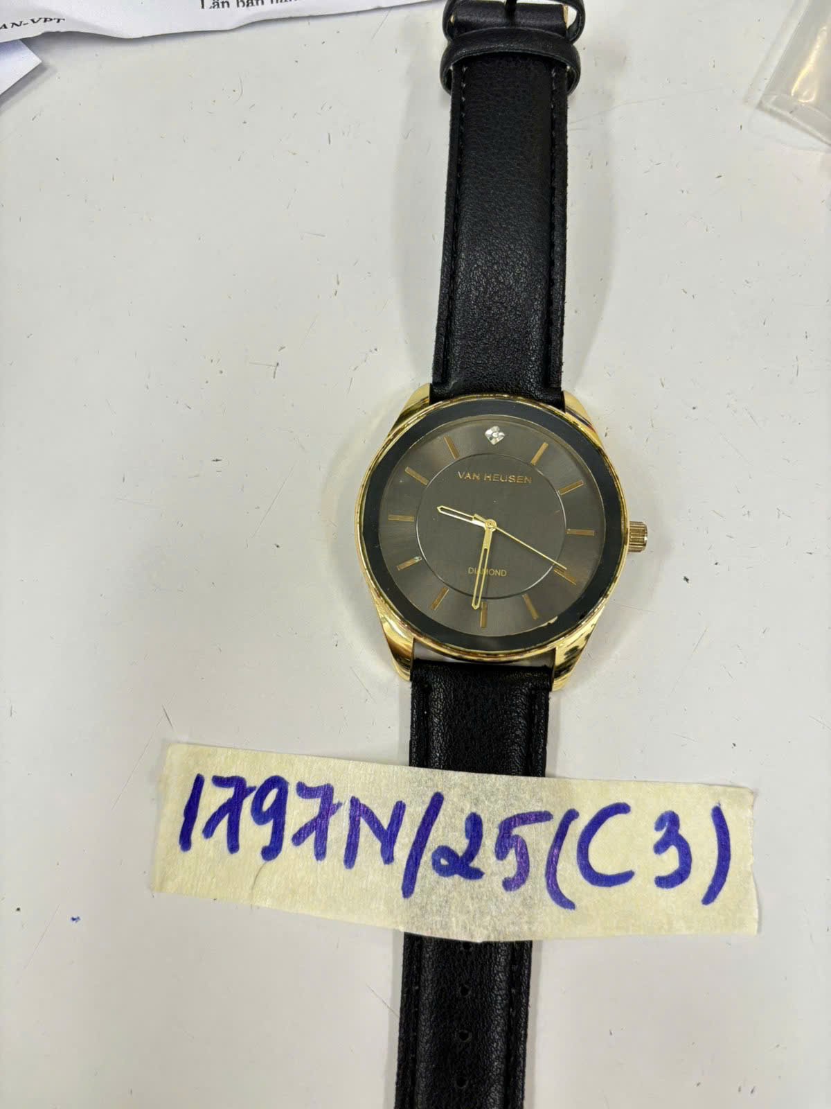 Mô tả: 01 đồng hồ "vanheusen' dây da đen.