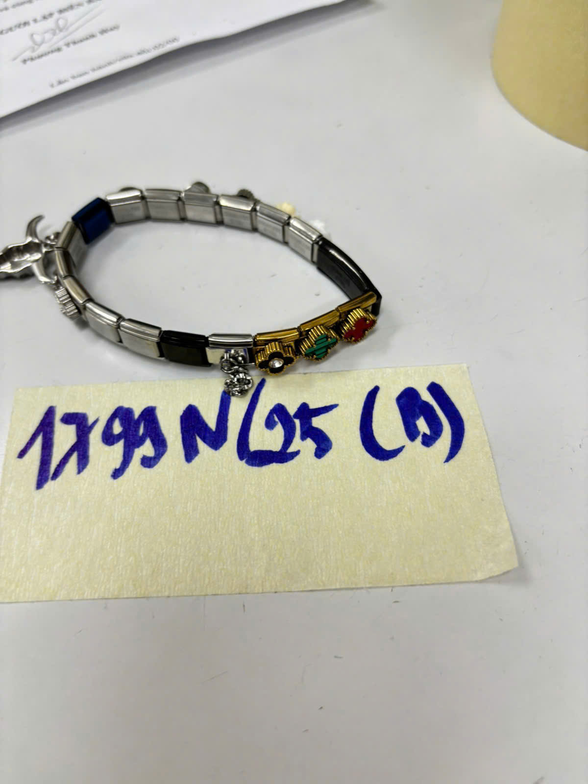 Mô tả: 01 lắc tay bằng kim loại màu trắng.