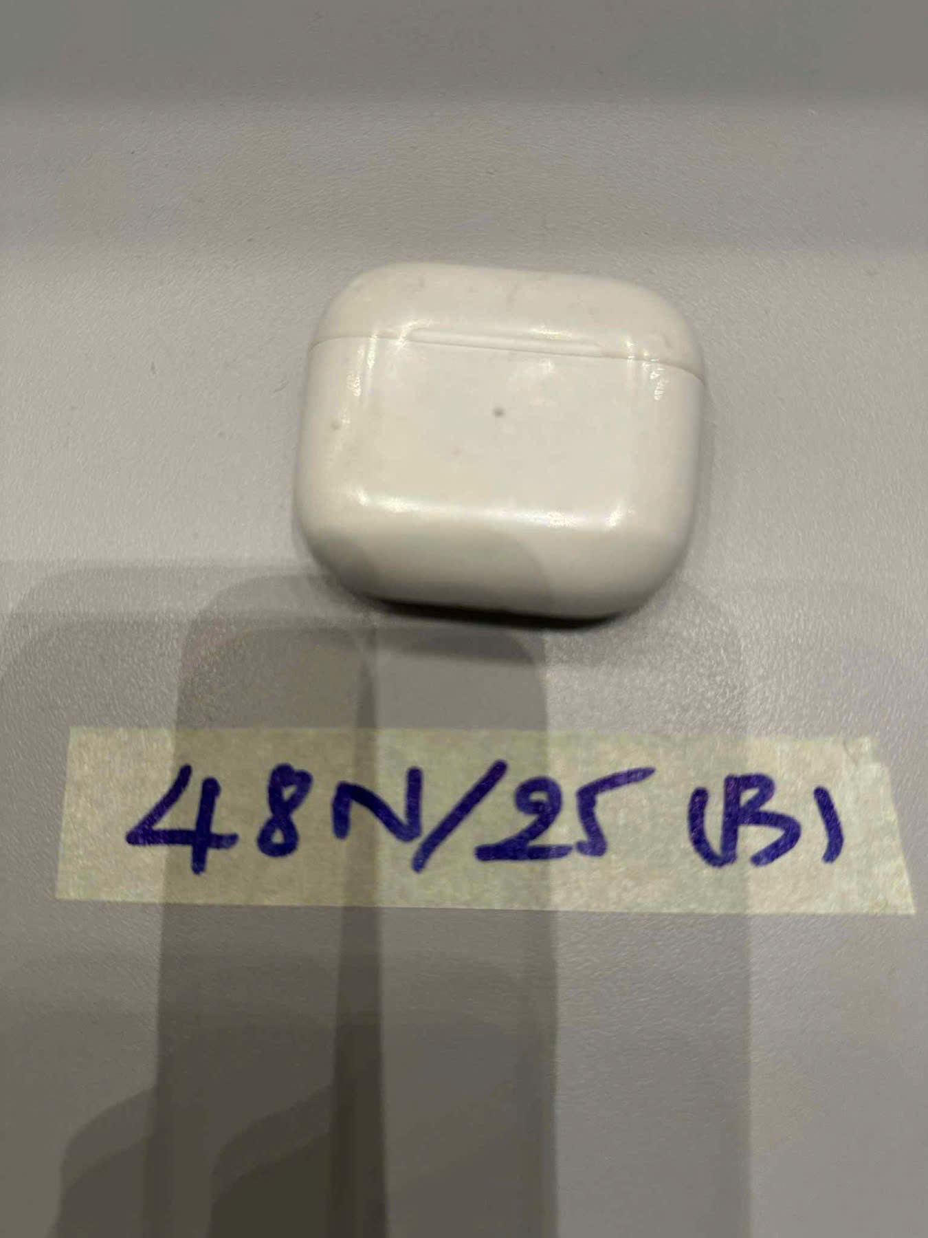 Mô tả: 01 tai nghe không dây màu trắng (hộp và 2 tai) đã qua sử dụng.