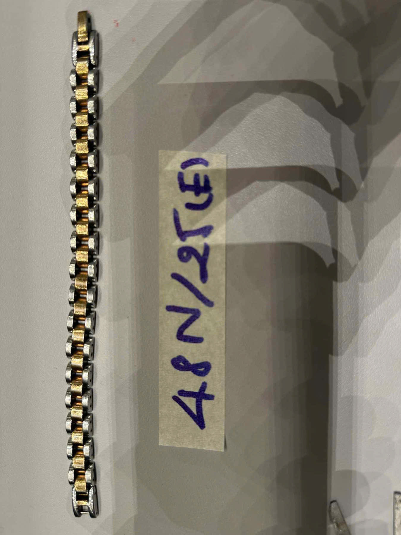 Mô tả: 01 vòng tay kim loại màu trắng- vàng đã qua sử dụng.