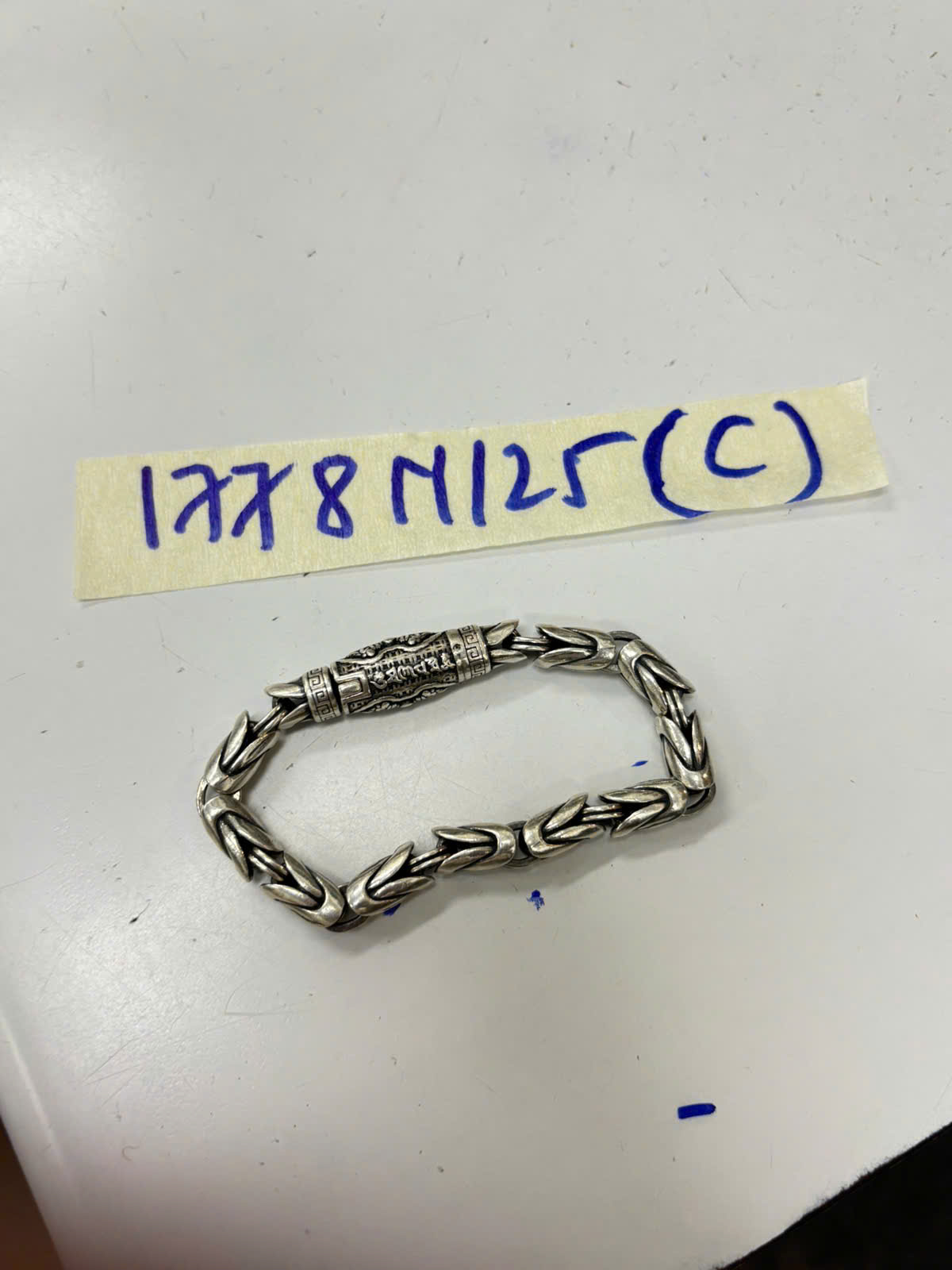 Ngày tiếp nhận: 29/9/2025 Mã hồ sơ: 1778N2025C Mô tả: 01 vòng tay màu trắng có chữ "Gu Shi jiang S925". |