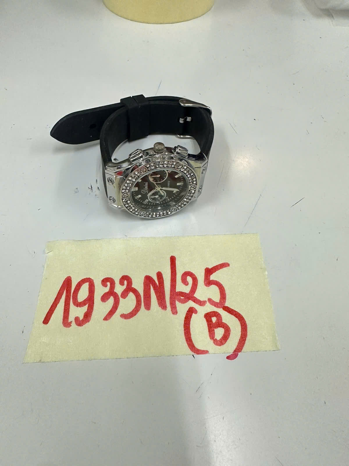Ngày tiếp nhận: 31/10/2025 Mã hồ sơ: 1933N2025B Mô tả: 01 đồng hồ kim loại màu bạc mặt tròn có chữ DLMLML QUATZ dây đeo cao su đen.      |
