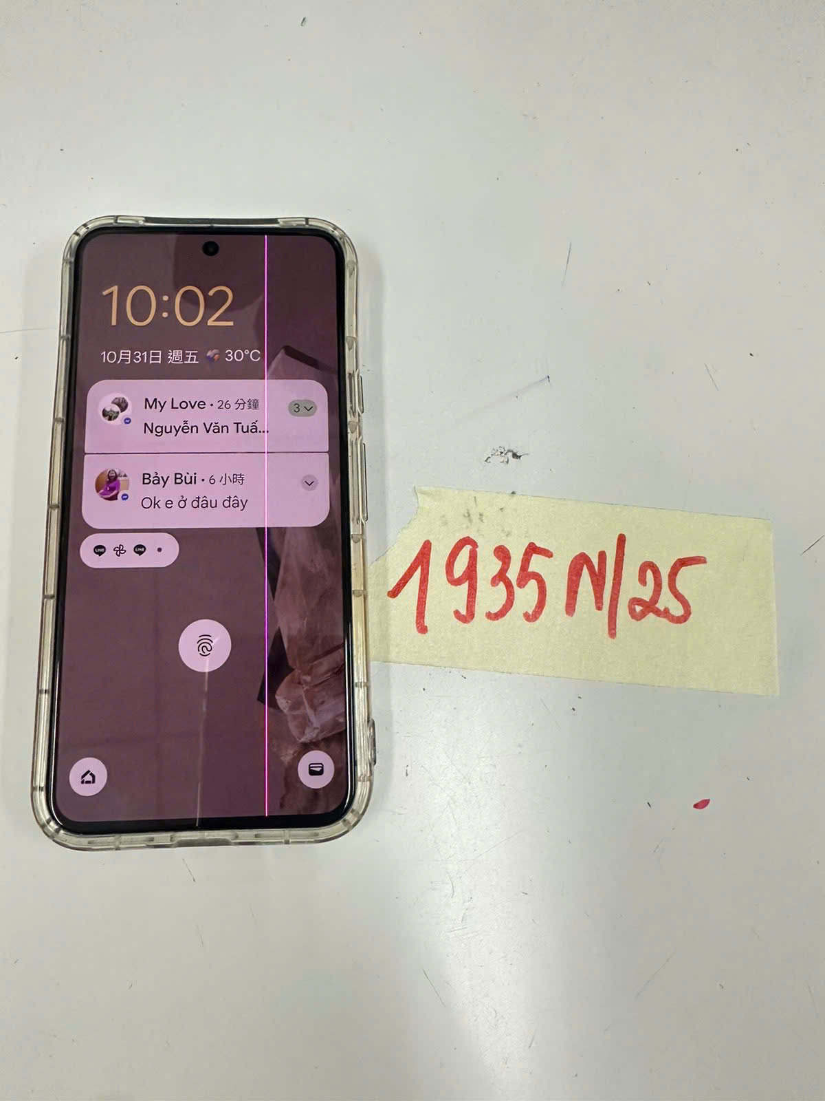 Ngày tiếp nhận: 31/10/2025 Mã hồ sơ: 1935N2025 Mô tả: 01 điện thoại di động màu đen có chữ G và 01 mảnh giấy màu vàng.      |