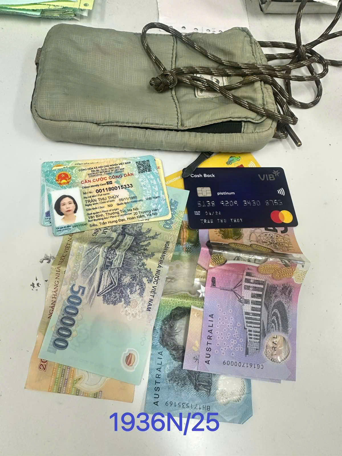 Ngày tiếp nhận: 31/10/2025 Mã hồ sơ: 1936N2025 Mô tả: 01 túi đen vải xám có: 01 căn cước công dân +1 giấy phép lái xe; 02 thẻ ngân hàng tên TRẦN THU THỦY và 01 CCCD mang tên TRẦN ĐỨC TUYẾTvà 20đô la ÚC và 700.000vnd.      |