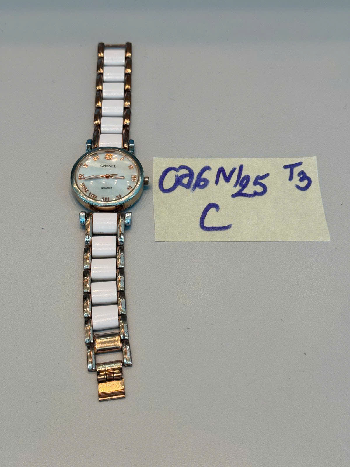 Ngày tiếp nhận: 31/10/2025 Mã hồ sơ: 76N2025C Mô tả: 01 đồng hồ có chữ CHANEL dây trắng viền kim loại.      |