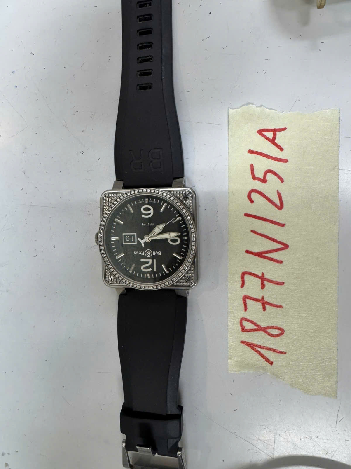 Ngày tiếp nhận: 20/10/2025 Mã hồ sơ: 1877N2025A Mô tả: 01 đông hồ kim loại bạc có chữ BELL&ROSS kèm dây màu đen. |