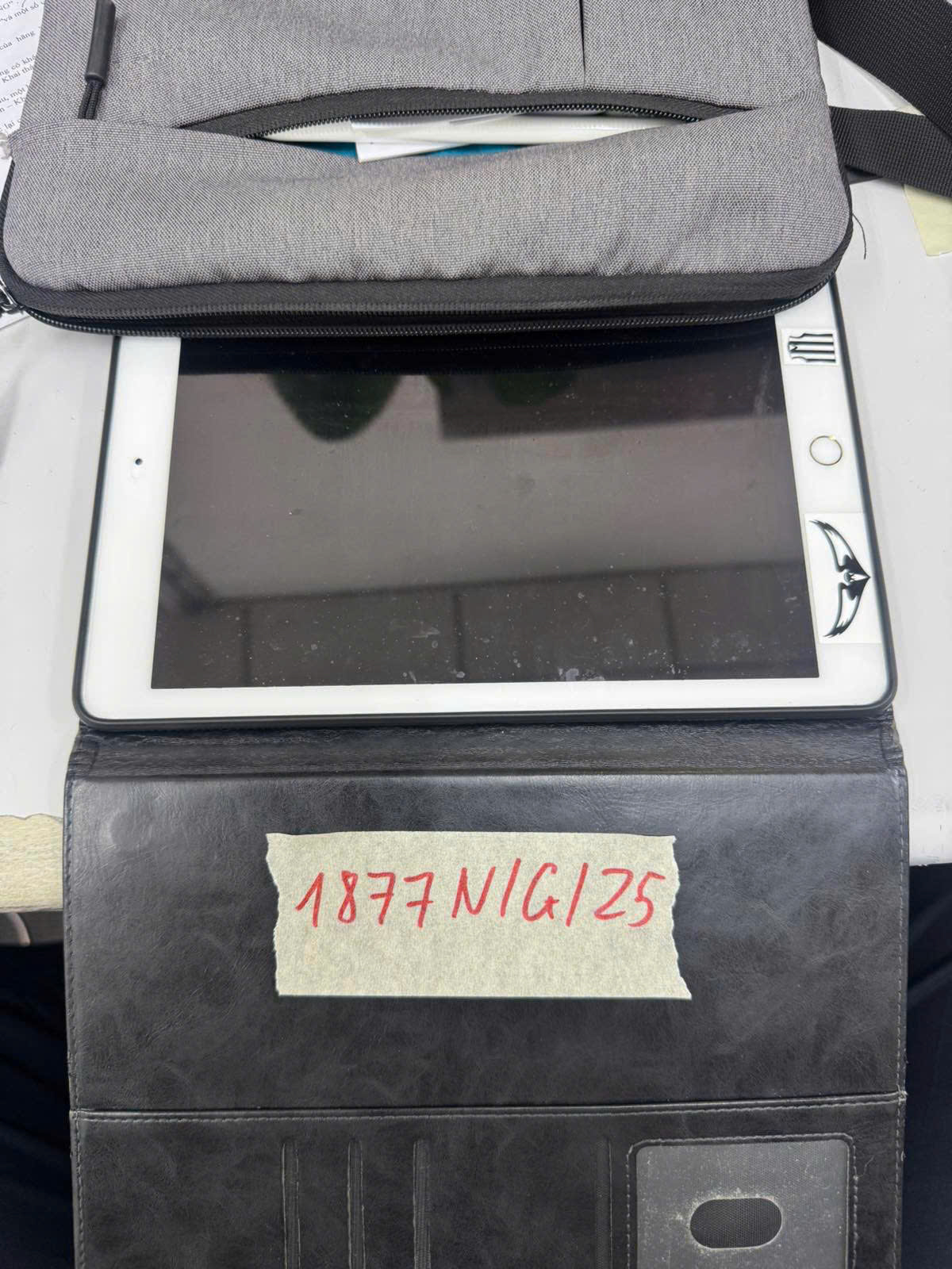 Ngày tiếp nhận: 20/10/2025 Mã hồ sơ: 1877N2025G Mô tả: 01 túi đựng máy tính bảng IPAD có MODEL: A1674 và 1 số vật dụng khác. |