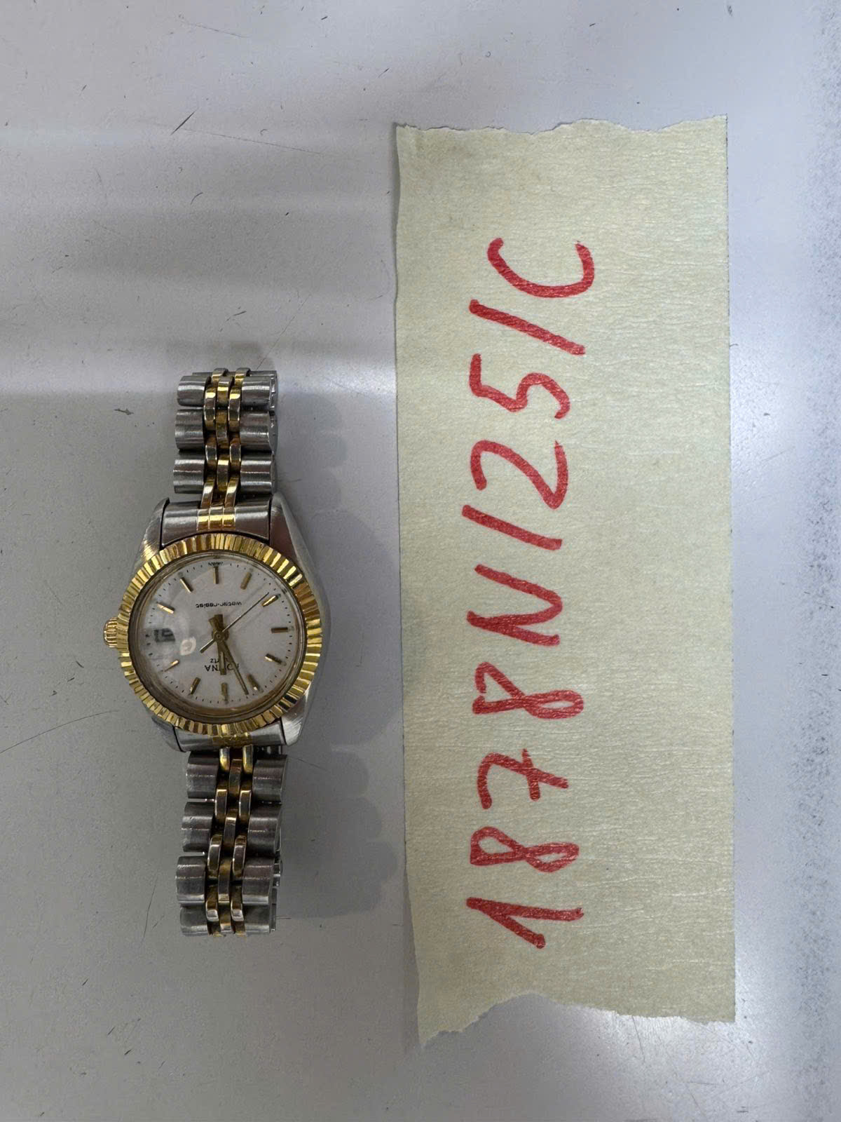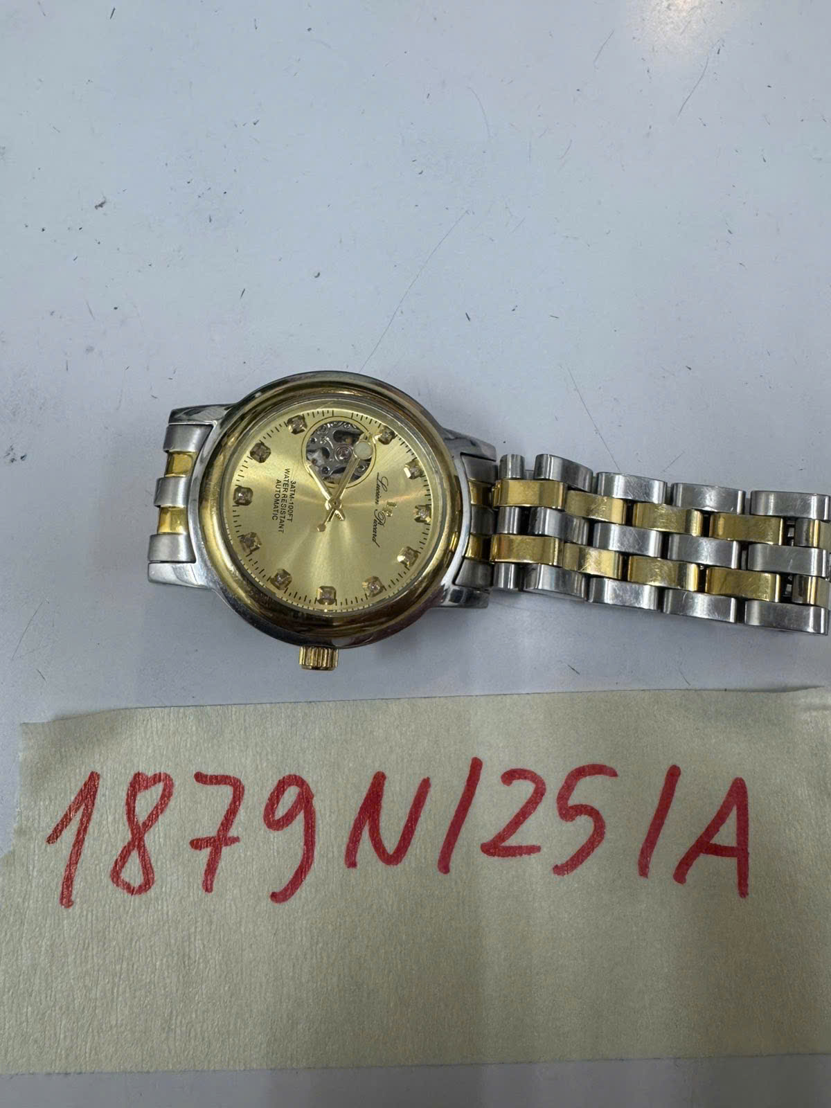 Ngày tiếp nhận: 20/10/2025 Mã hồ sơ: 1878N2025C Mô tả: 01 đồng hồ lk màu bạc xen màu vàng đồng, mặt tròn có chữ ROFINA. |