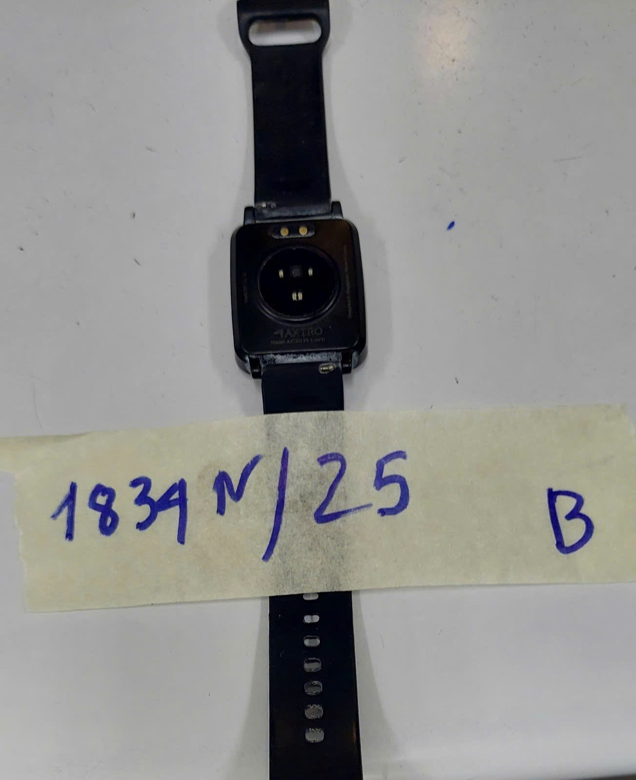 Ngày tiếp nhận: 10/10/2025 Mã hồ sơ: 1834N2025B Mô tả: 01 đồng hồ thông minh màu đen mặt vuông có chữ "AXTRO", dây nhựa màu đen. |