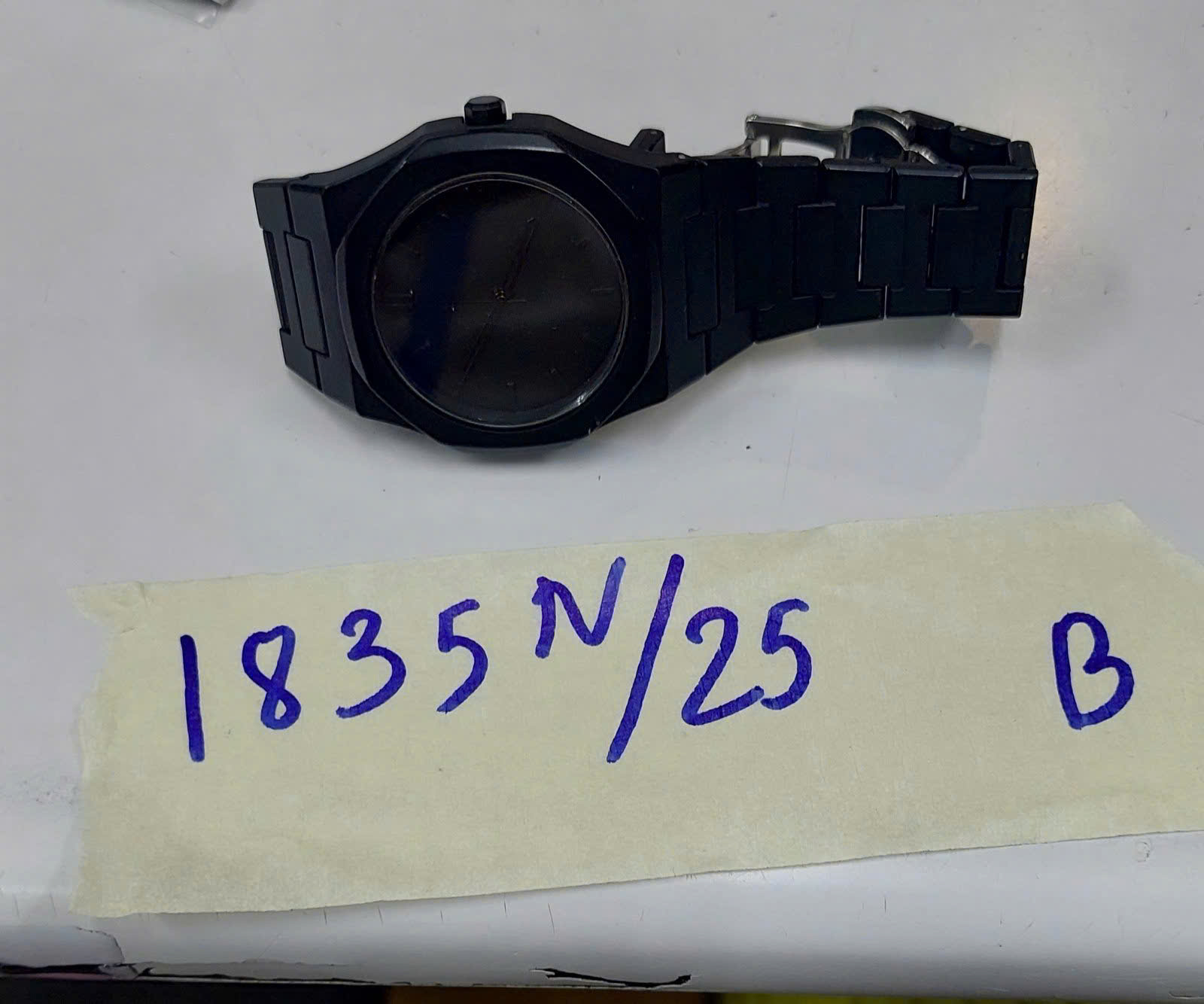 Ngày tiếp nhận: 10/10/2025 Mã hồ sơ: 1835N2025B Mô tả: 01 đồng hồ bằng nhựa màu đen mặt tròn, dây đeo bằng nhựa màu đen không rõ nhãn hiệu. |
