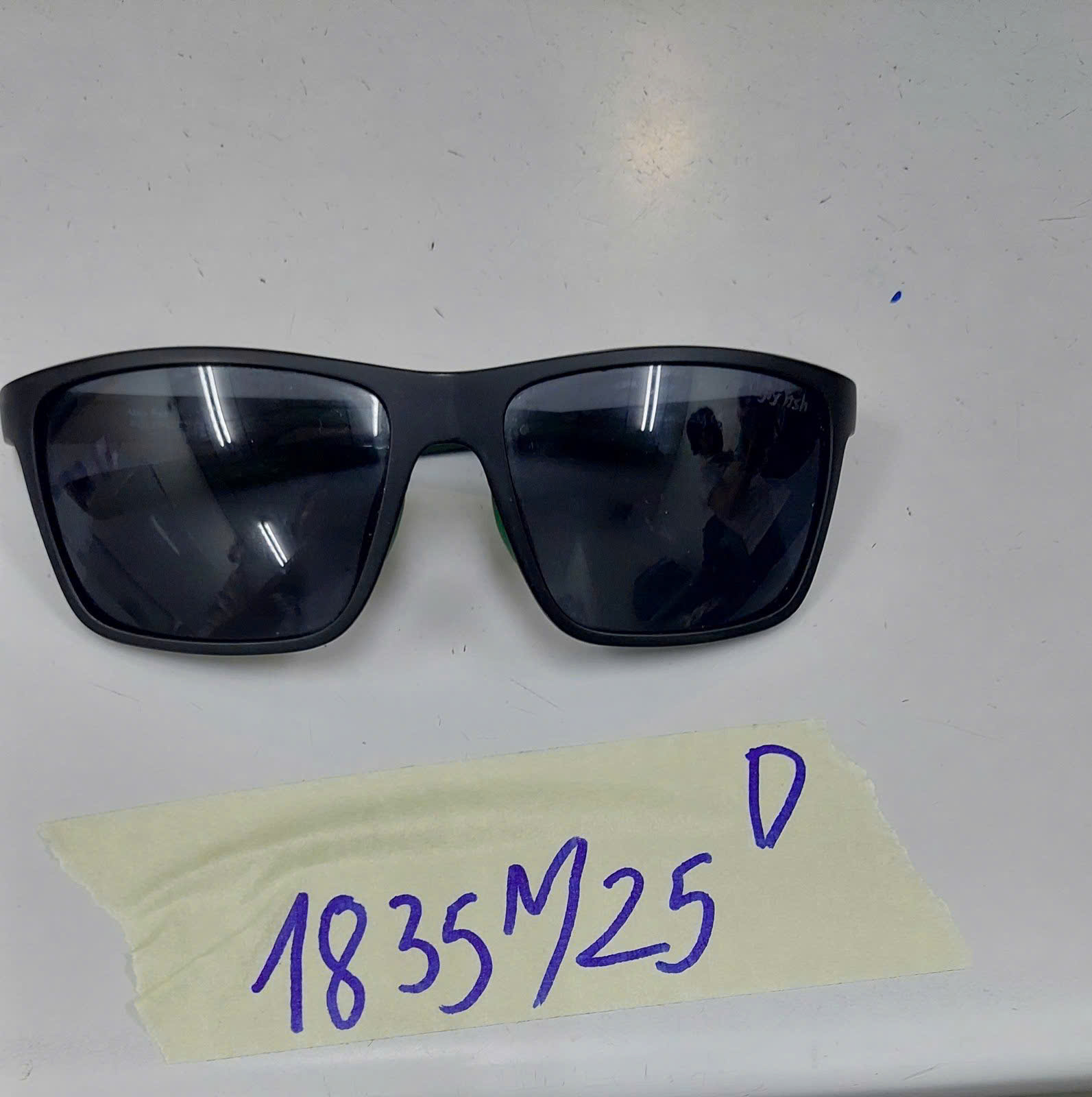 Ngày tiếp nhận: 10/10/2025 Mã hồ sơ: 1835N2025D Mô tả: 01 mắt kính gọng nhựa màu đen xanh lá có chữ "UGLY FISH". |