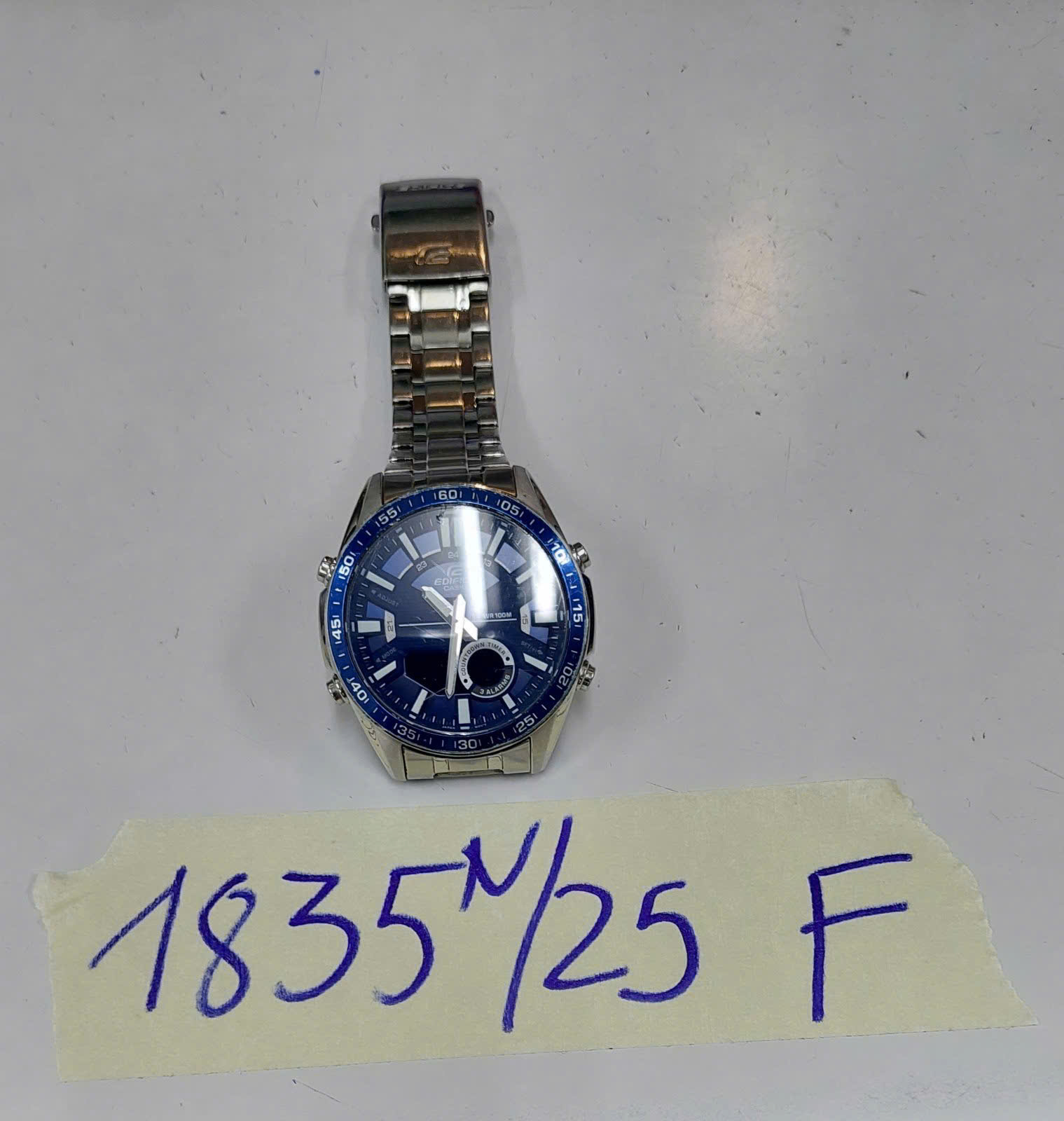 Ngày tiếp nhận: 10/10/2025 Mã hồ sơ: 1835N2025F Mô tả: 01 túi nilong màu trắng bên trong có 1 đồng hồ bằng kim loại mặt tròn màu xanh có chữ "CASIO EDIFICE" dây đeo bằng kim loại màu trắng. |