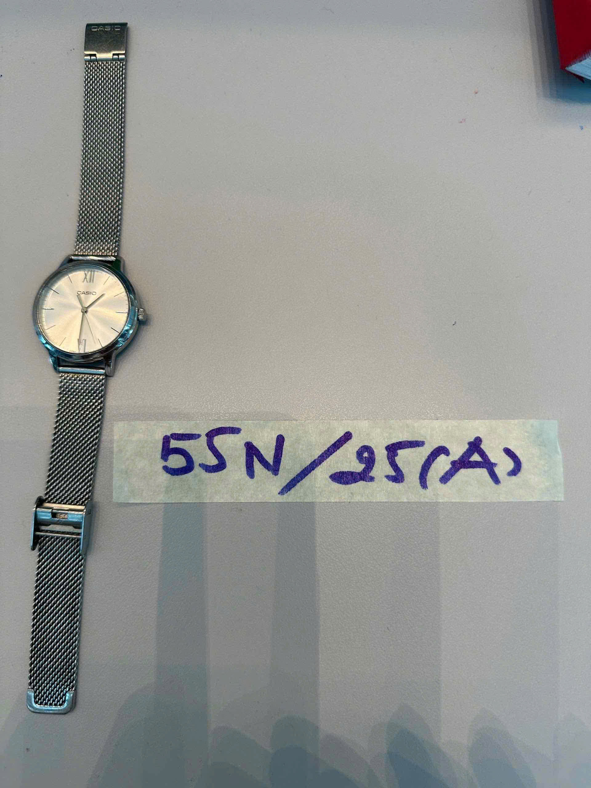 Ngày tiếp nhận: 10/10/2025 Mã hồ sơ: 55N2025A Mô tả: 01 đồng hồ dây kim loại màu bạc hiệu "CASIO". |