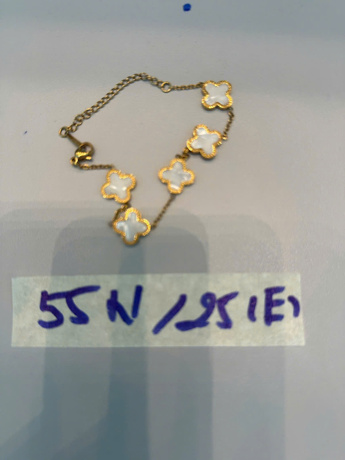 Ngày tiếp nhận: 10/10/2025 Mã hồ sơ: 55N2025E Mô tả: 01 dây kim loại màu vàng có họa tiết 4 cánh hoa. |