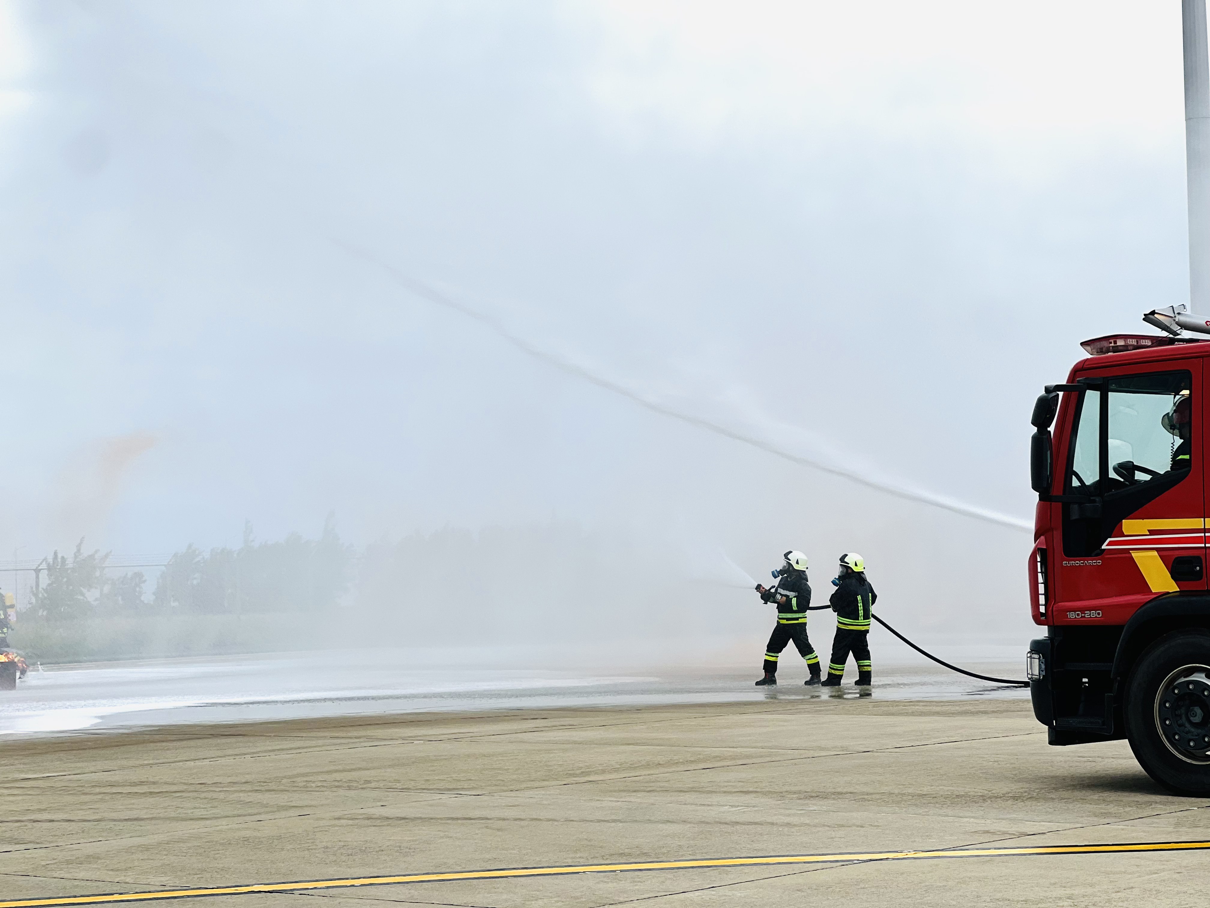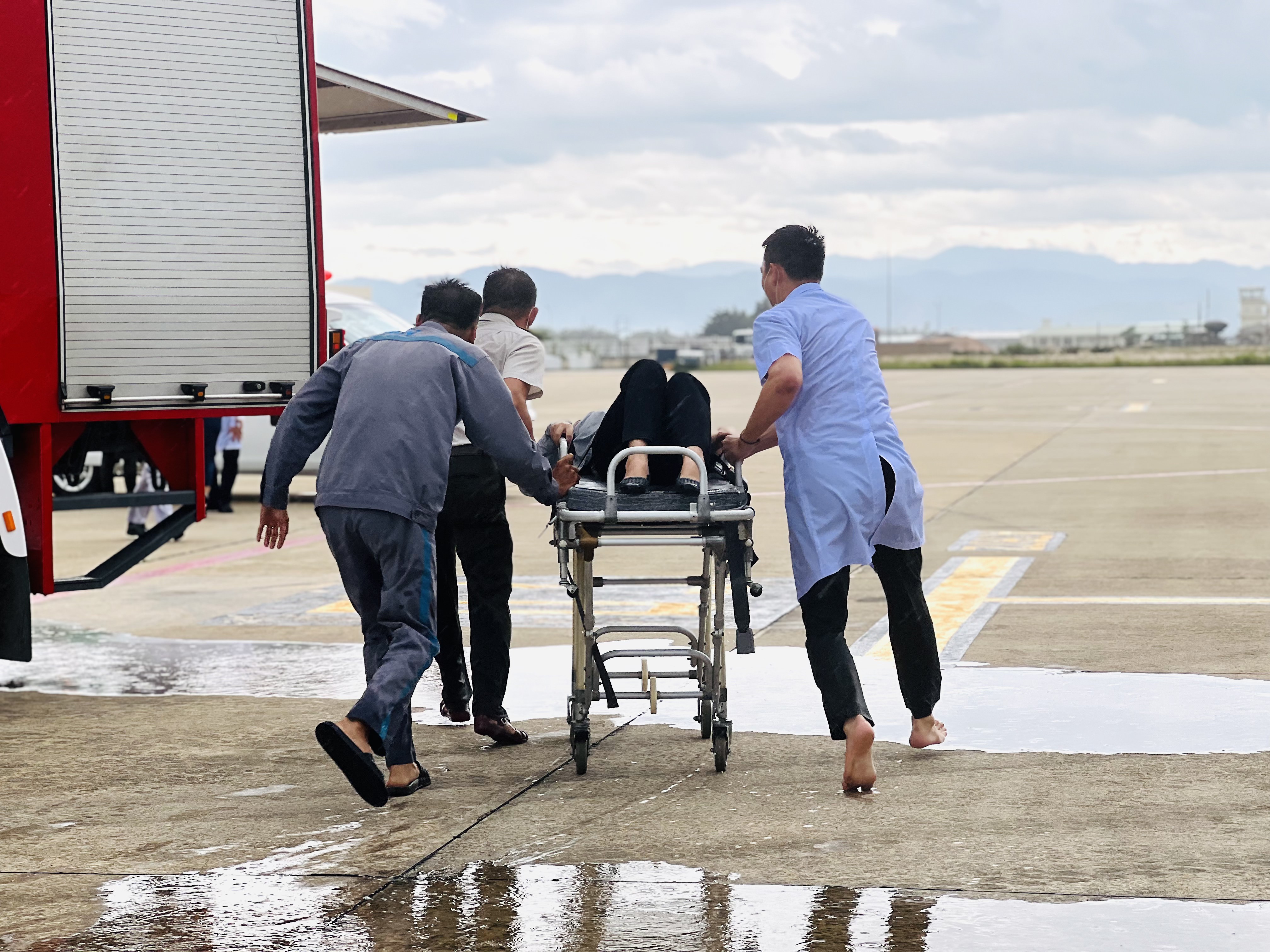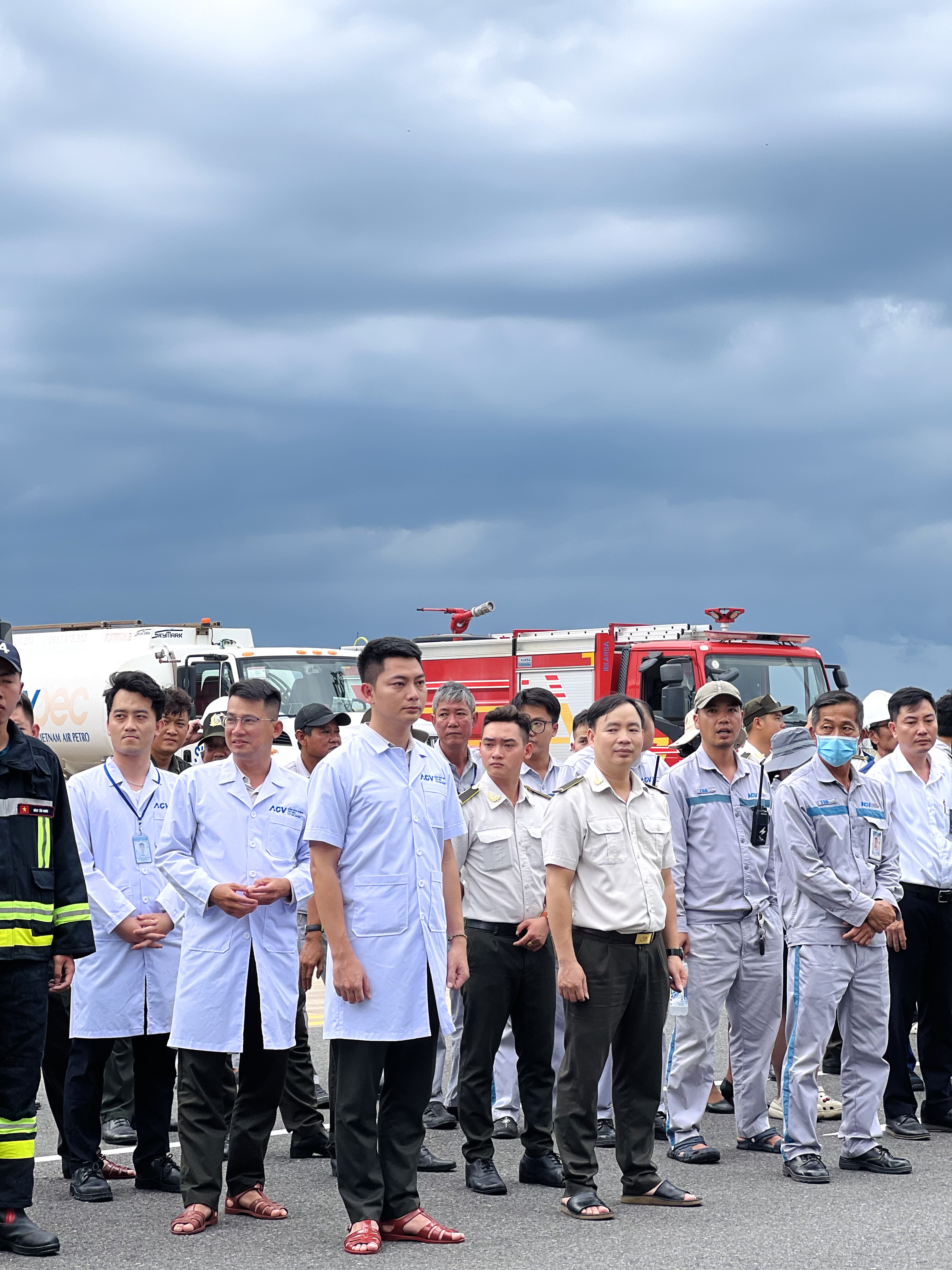 Ngay khi phát hiện sự cố, lực lượng an ninh sân đỗ lập tức báo động, triển khai các biện pháp sơ tán hành khách, đồng thời huy động phương tiện chữa cháy chuyên ngành tiếp cận hiện trường.