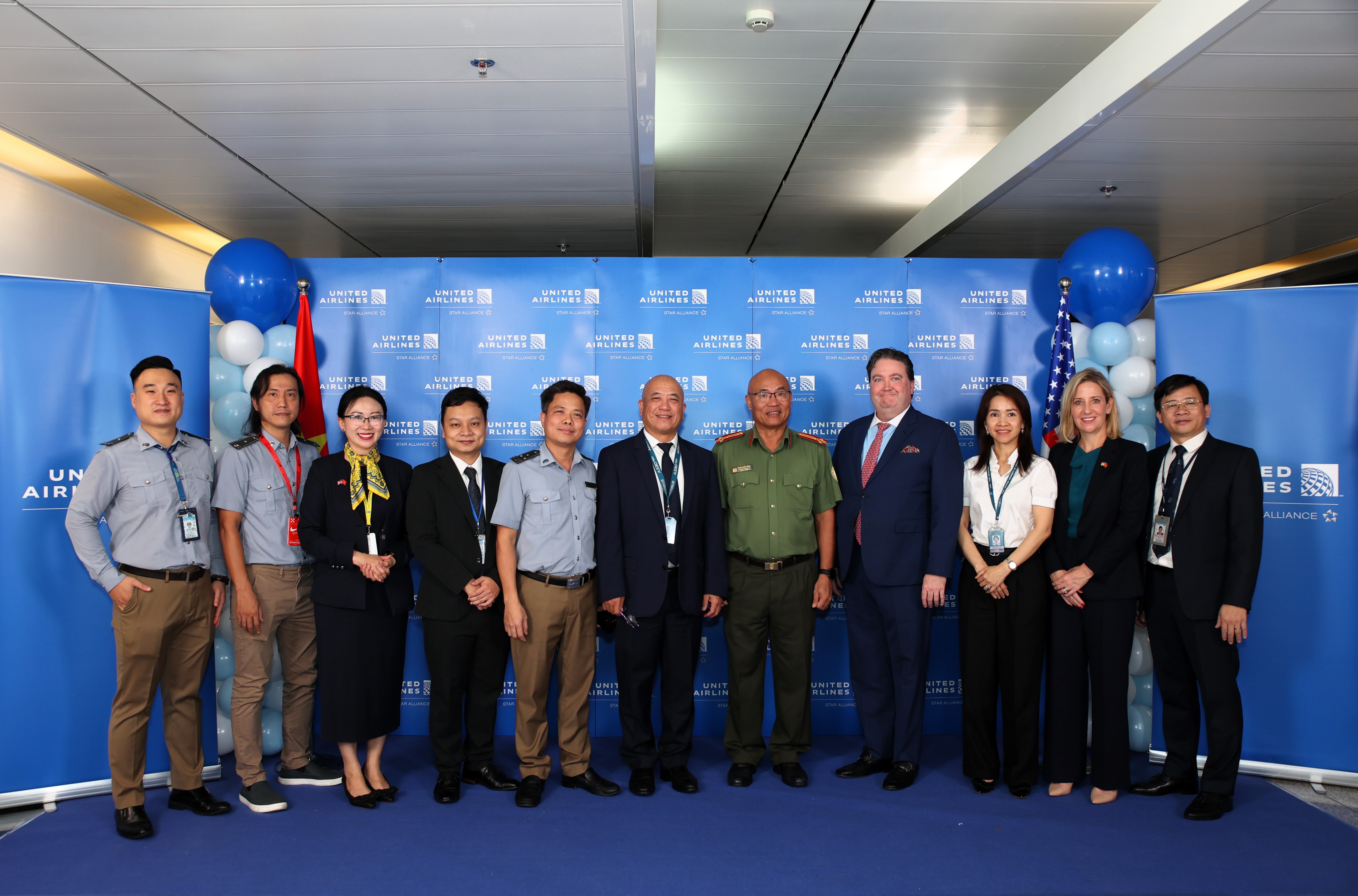 Tham dự buổi lễ khai trương đường bay có sự hiện diện của ông Hồ Minh Tấn - Phó Cục trưởng Cục Hàng không Việt Nam, Mr. Marc Evans Knapper - Đại sứ Hoa Kỳ tại Việt Nam, đoàn Tổng Lãnh sự Hoa Kỳ tại TP.HCM; đại diện lãnh đạo các đơn vị chức năng gồm: Công an cửa khẩu, Hải quan, Cảng vụ hàng không miền Nam, Cảng HKQT Tân Sơn Nhất, Công ty Phục vụ mặt đất Sài Gòn (SAGS) và Ban Lãnh đạo cấp cao của United Airlines.