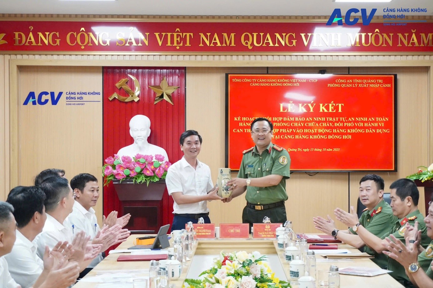 Chiều ngày 16 tháng 10 năm 2025, Cảng hàng không Đồng Hới và Phòng Quản lý Xuất nhập cảnh (PA08) – Công an tỉnh Quảng Trị đã tổ chức Lễ ký kết Kế hoạch phối hợp công tác tại hội trường Cảng hàng không Đồng Hới nhằm tăng cường hiệu quả công tác bảo đảm an ninh trật tự, an ninh – an toàn hàng không, phòng cháy chữa cháy (PCCC) và chủ động phòng ngừa, ứng phó với các hành vi can thiệp bất hợp pháp vào hoạt động hàng không dân dụng.