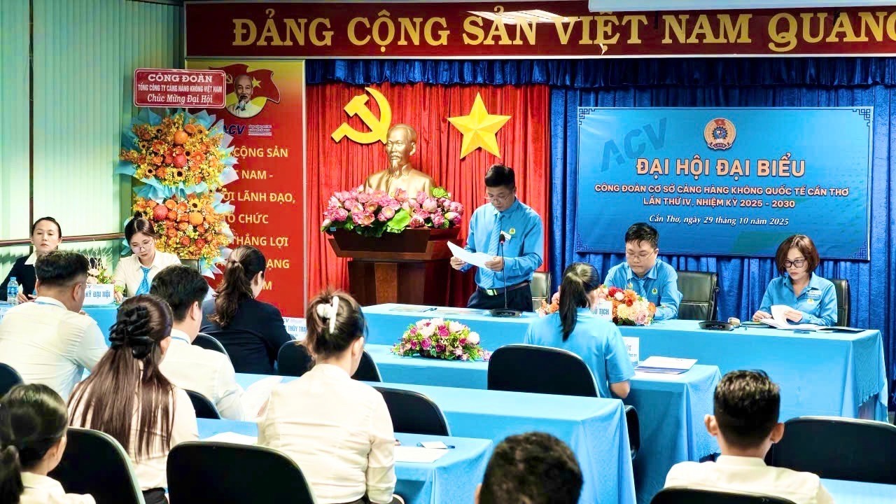 Ngày 29/10/2025, Đại hội Công đoàn cơ sở Cảng hàng không quốc tế (HKQT) Cần Thơ, nhiệm kỳ 2025-2030 đã diễn ra trong không khí trang trọng, dân chủ và đoàn kết