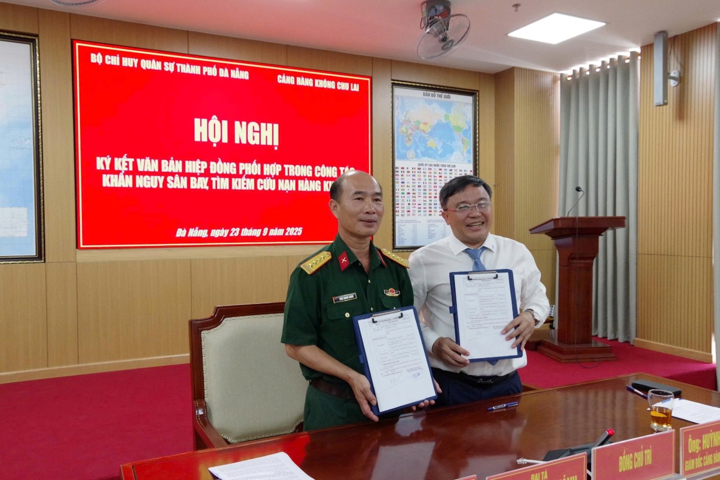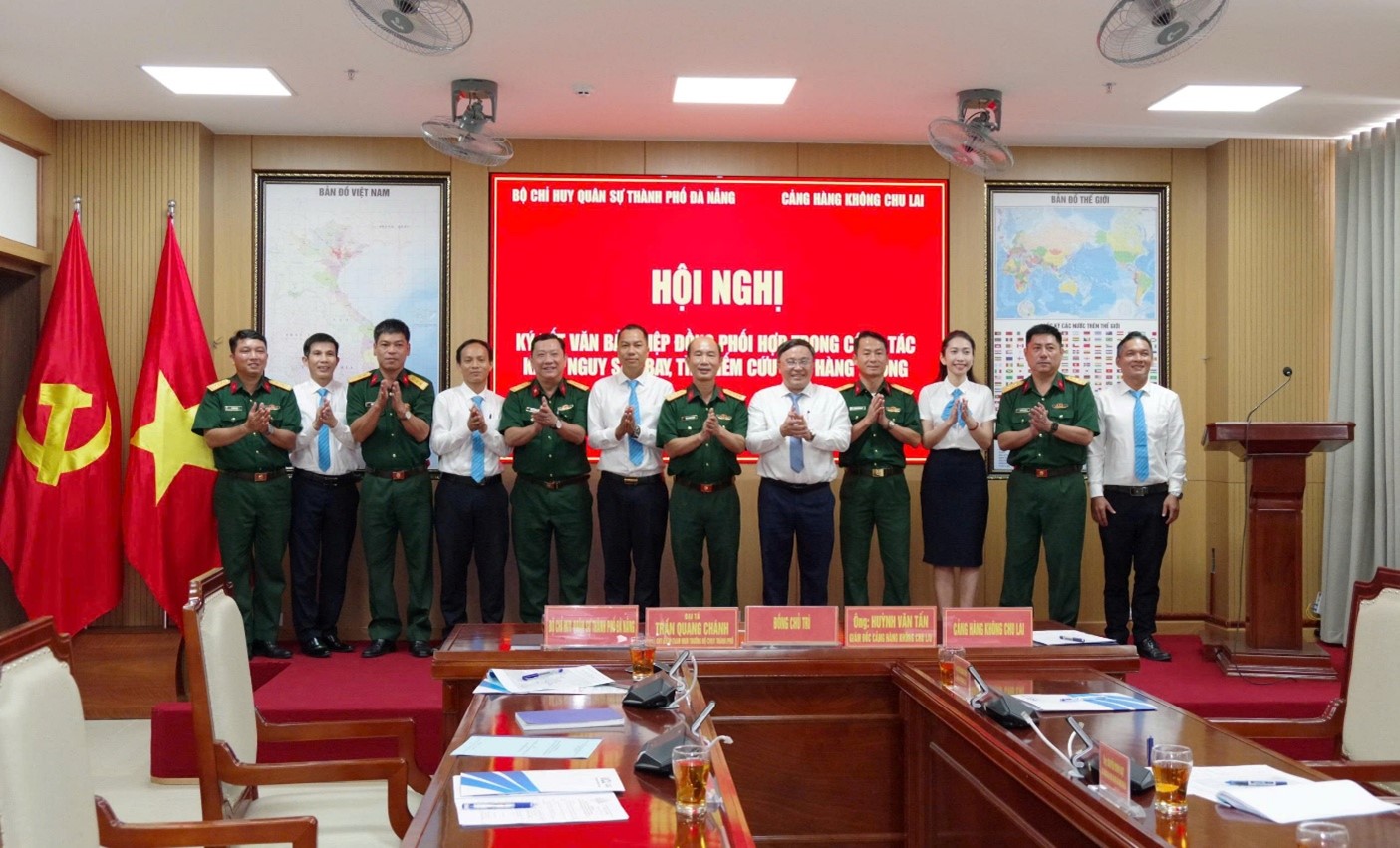 Ngày 23/9/2025, tại thành phố Đà Nẵng đã diễn ra Hội nghị ký kết văn bản hiệp đồng trong công tác Khẩn nguy sân bay (KNSB) và Tìm kiếm cứu nạn hàng không (TKCN) giữa Bộ Chỉ huy Quân sự thành phố Đà Nẵng và Cảng hàng không Chu Lai. Đây là hoạt động có ý nghĩa quan trọng, nhằm cụ thể hóa trách nhiệm, cơ chế phối hợp giữa hai đơn vị trong xử lý các tình huống khẩn nguy, sự cố, tai nạn hàng không, bảo đảm an toàn tuyệt đối cho người, tài sản và hoạt động bay trên địa bàn.