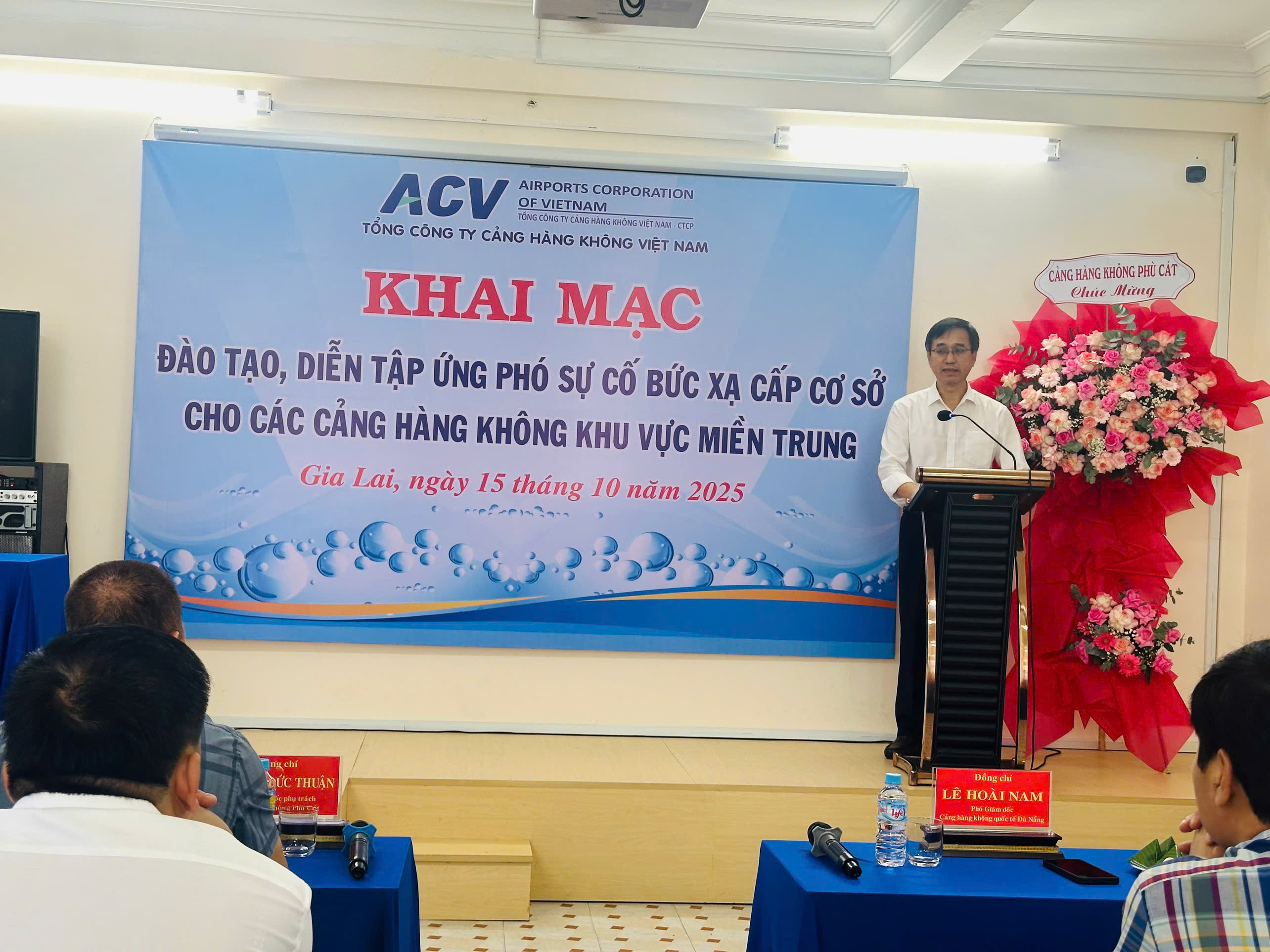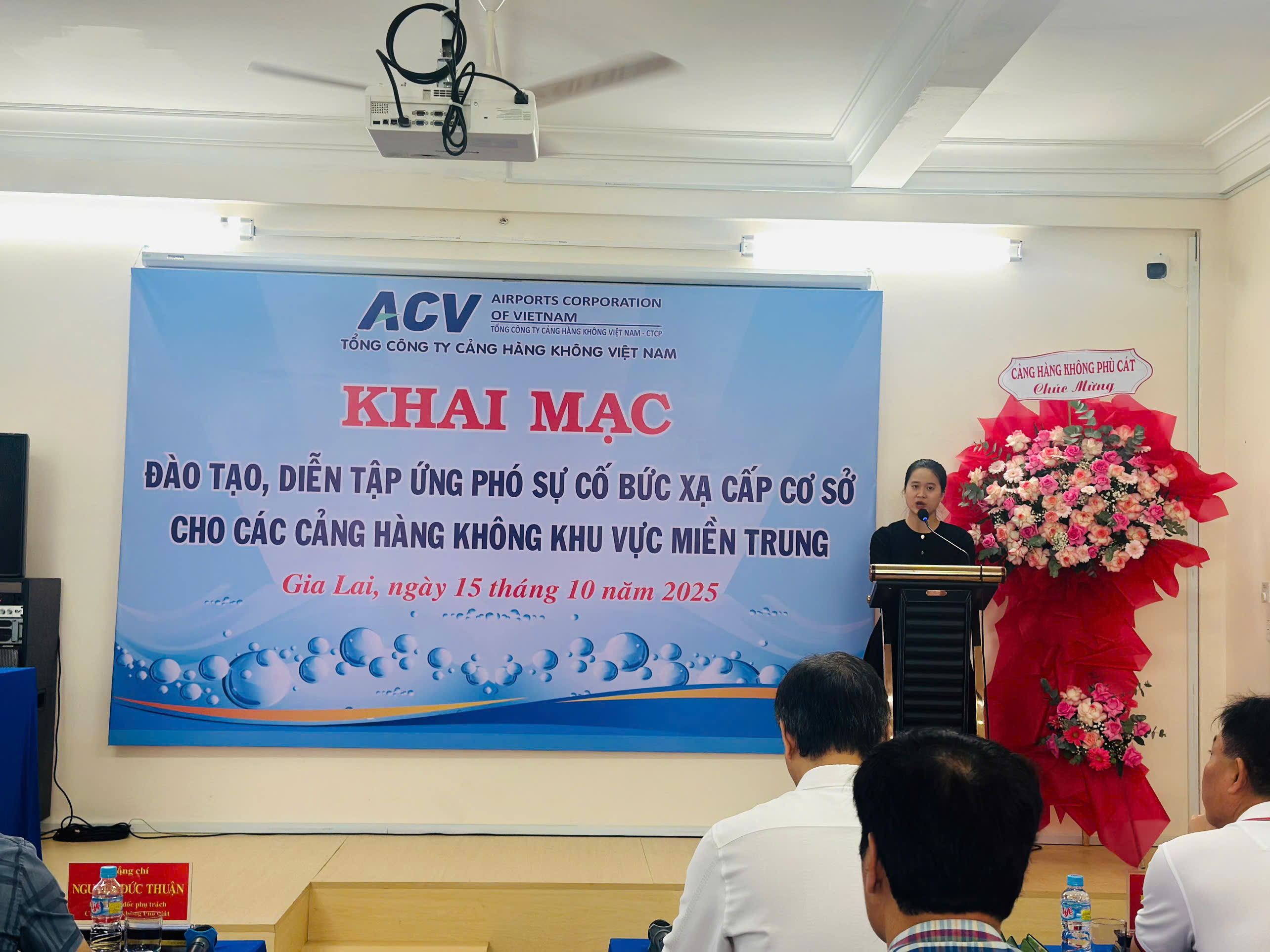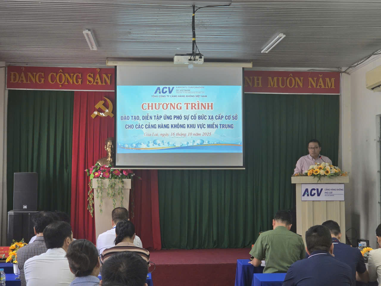 Trong hai ngày 15–16/10/2025, tại Cảng hàng không Phù Cát, chương trình đào tạo và diễn tập ứng phó sự cố bức xạ cấp cơ sở khu vực miền Trung đã được tổ chức thành công tốt đẹp, với sự tham dự của đại diện các Cảng HKQT Đà Nẵng, Cảng HKQT Phú Bài, Cảng HK Chu Lai, Cảng HK Pleiku cùng các đơn vị chuyên môn.