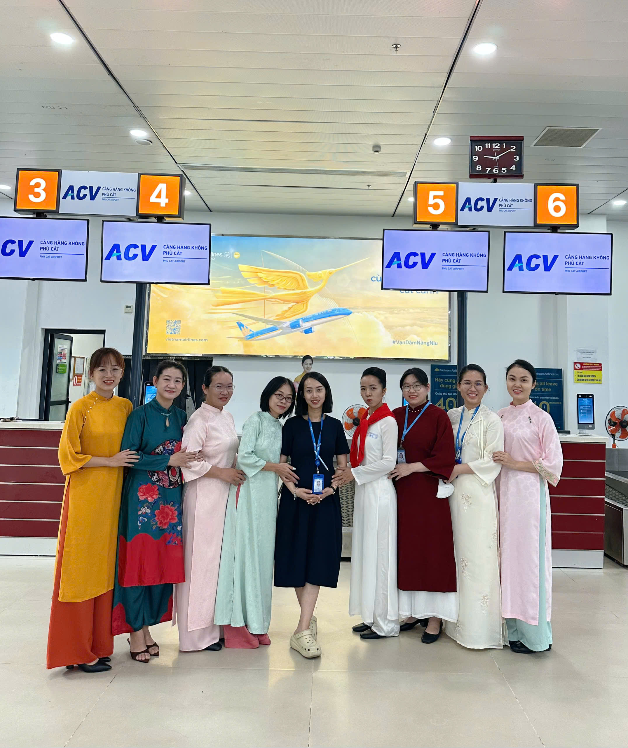 Bên cạnh đó, hưởng ứng phong trào “Tuần lễ Áo dài”, các nữ cán bộ, nhân viên Cảng hàng không Phù Cát đồng loạt diện áo dài khi làm việc, tạo nên hình ảnh duyên dáng, thanh lịch, thể hiện nét đẹp văn hóa truyền thống của phụ nữ Việt Nam nơi công sở.