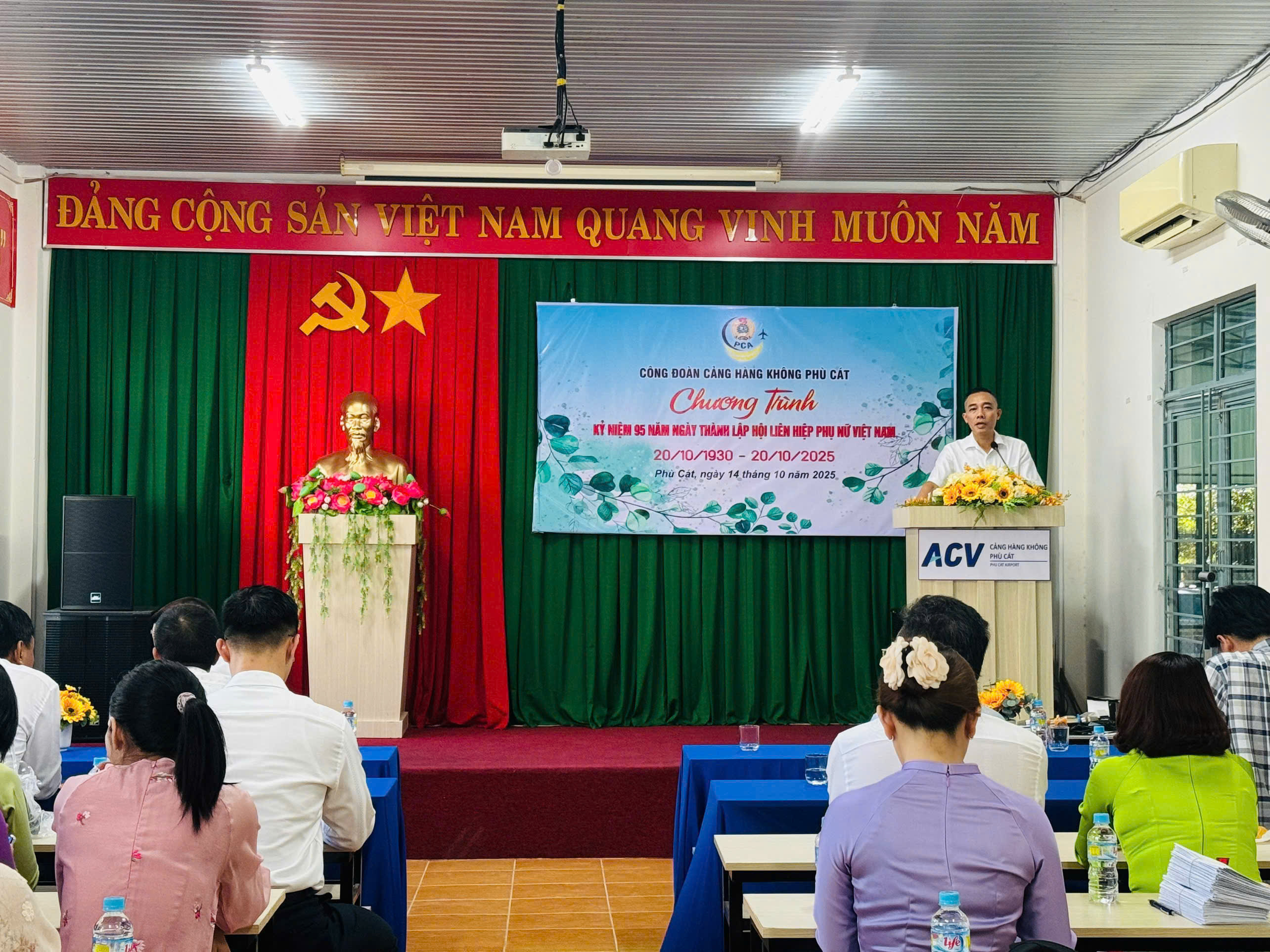 Ngày 14/10/2025, tại hội trường Cảng hàng không Phù Cát, Ban Chấp hành Công đoàn đã tổ chức buổi gặp mặt thân mật, gửi lời chúc tốt đẹp cùng những bó hoa tươi thắm và phần quà ý nghĩa đến toàn thể nữ cán bộ, công nhân viên.