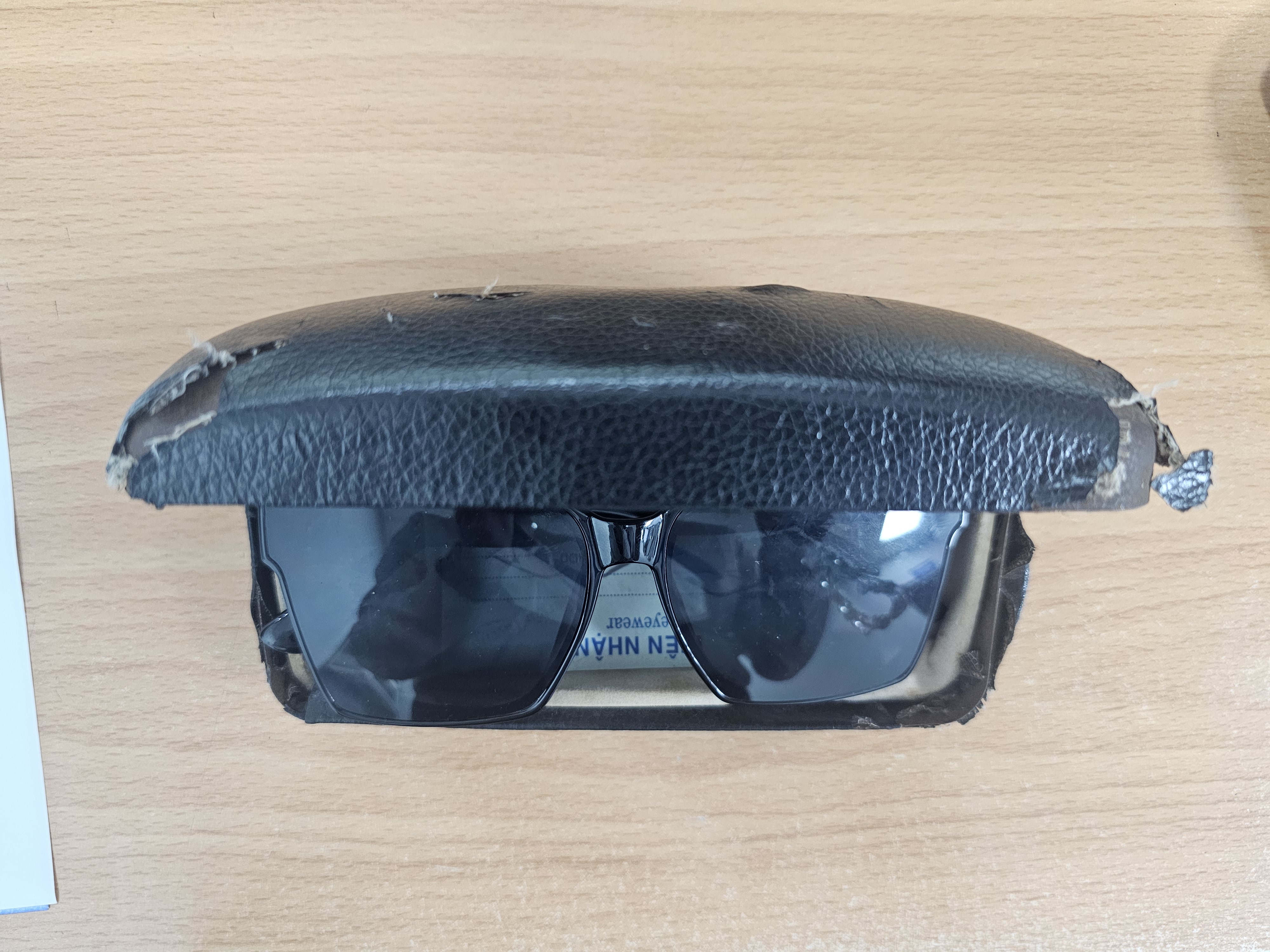 01 hộp màu đen, trong có 01 kính gọng màu xanh + 01 cặp gọng rời, được tìm thấy tại ANSC HLXT quốc nội vào ngày 26/10/2025