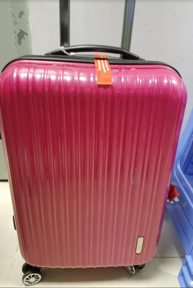 01 vali màu đỏ tím khách quên ở cách ly quốc nội.