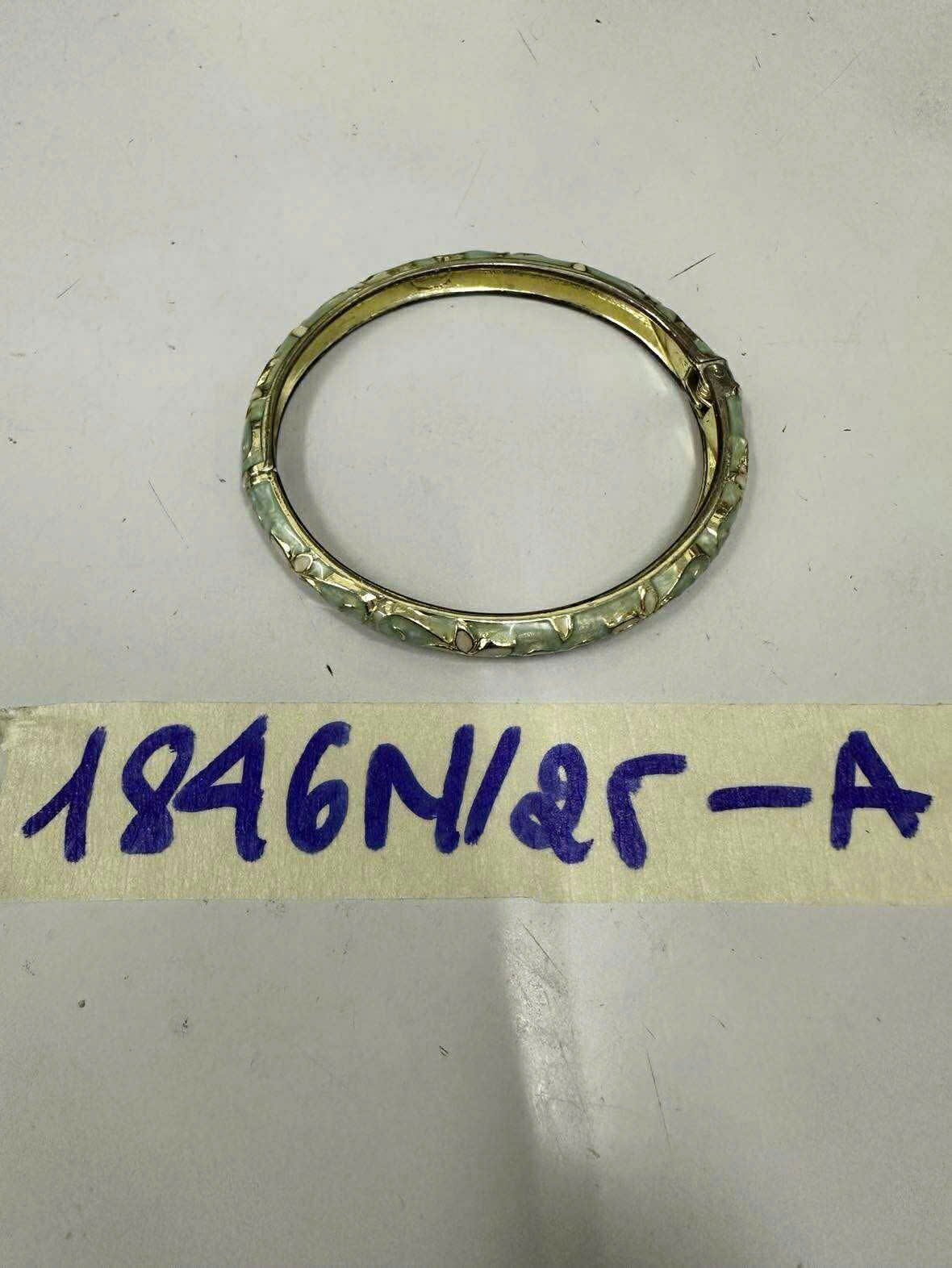 Ngày tiếp nhận: 13/10/2025 Mã hồ sơ: 1846N2025A Mô tả: 01 vòng tay kim loại màu vàng có hình hoa màu trắng. |