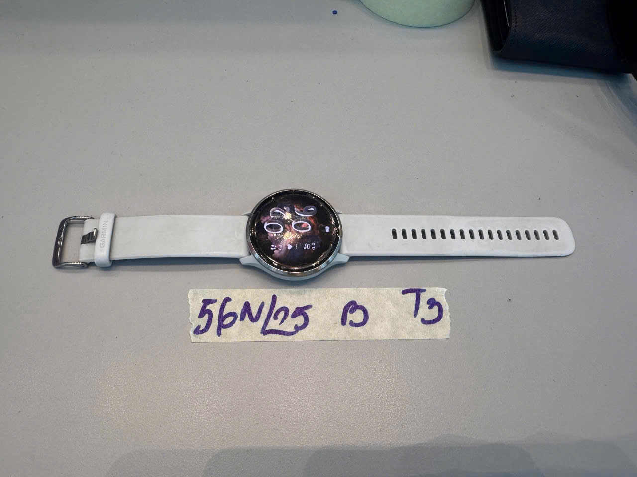 Ngày tiếp nhận: 11/10/2025 Mã hồ sơ: 56N2025B Mô tả: 01 đồng hồ thông minh GARMIN dây đeo cao su màu trắng, mặt đồng hồ hình tròn. |