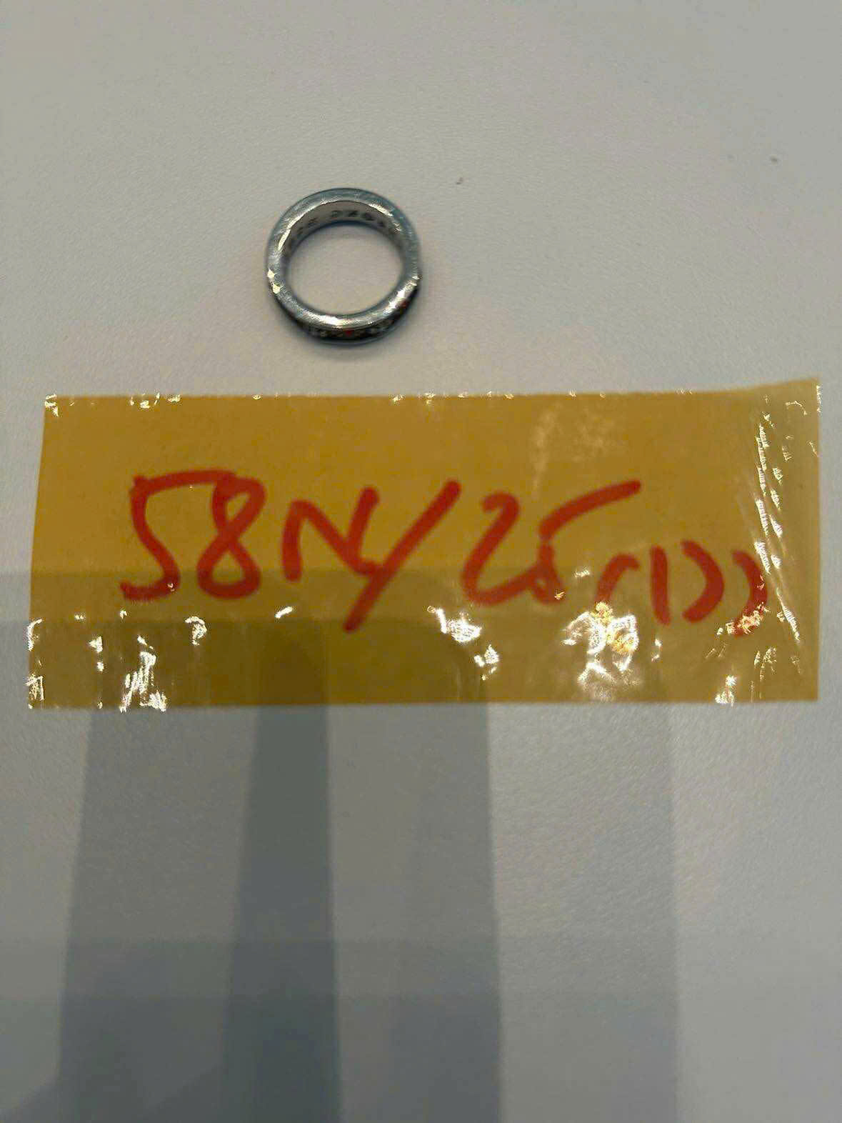 Ngày tiếp nhận: 13/10/2025 Mã hồ sơ: 58N2025D Mô tả: 01 nhẫn kim loại trắng có hạt đỏ. |
