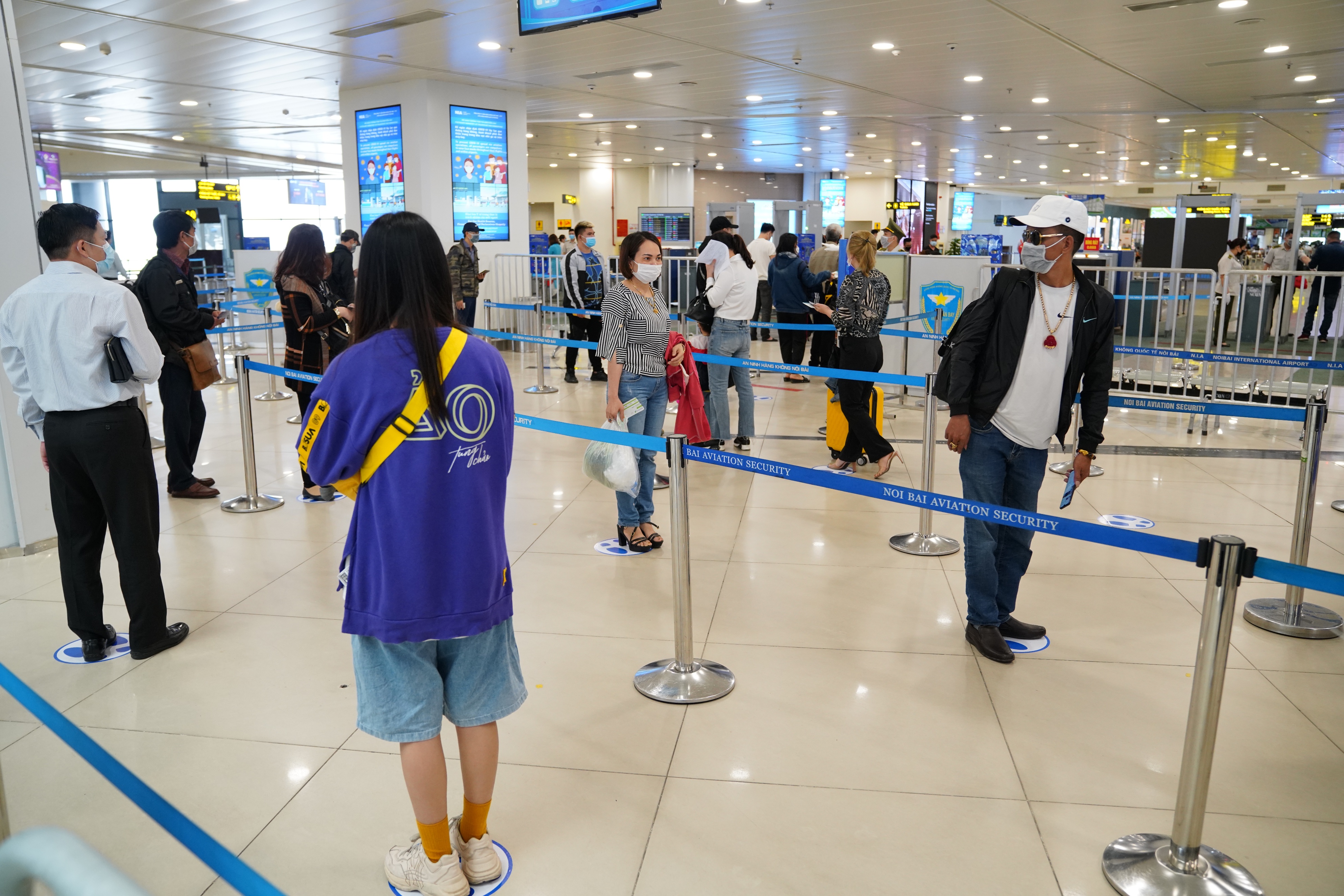 Cảng HKQT Nội Bài đã bố trí xuyên suốt dây chuyền phục vụ hành khách đi, hành khách đến tại cả hai nhà ga T1 và T2 để đảm bảo hành khách xếp hàng làm các thủ tục hàng không phải giữ khoảng cách với nhau tối thiểu 2 mét.