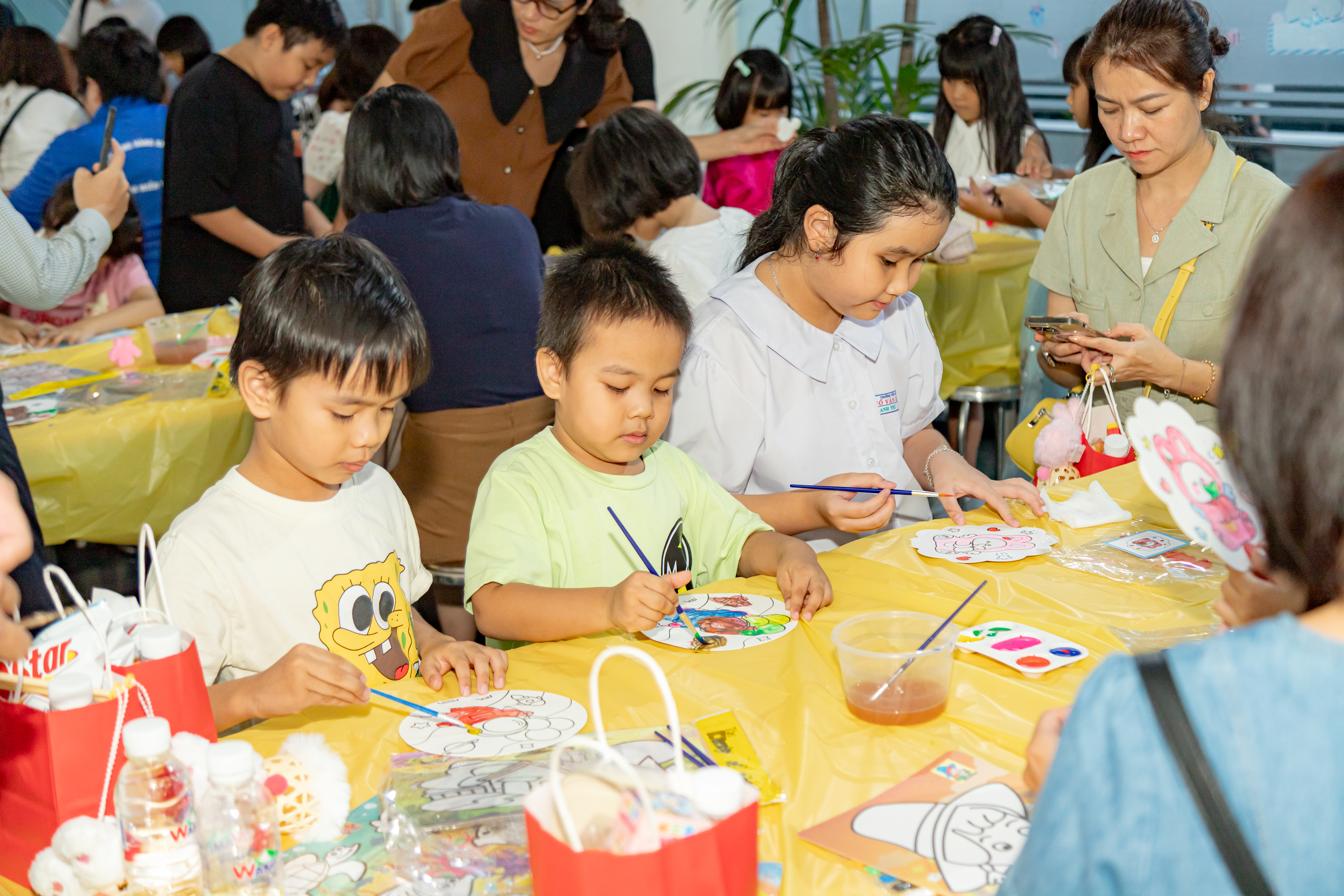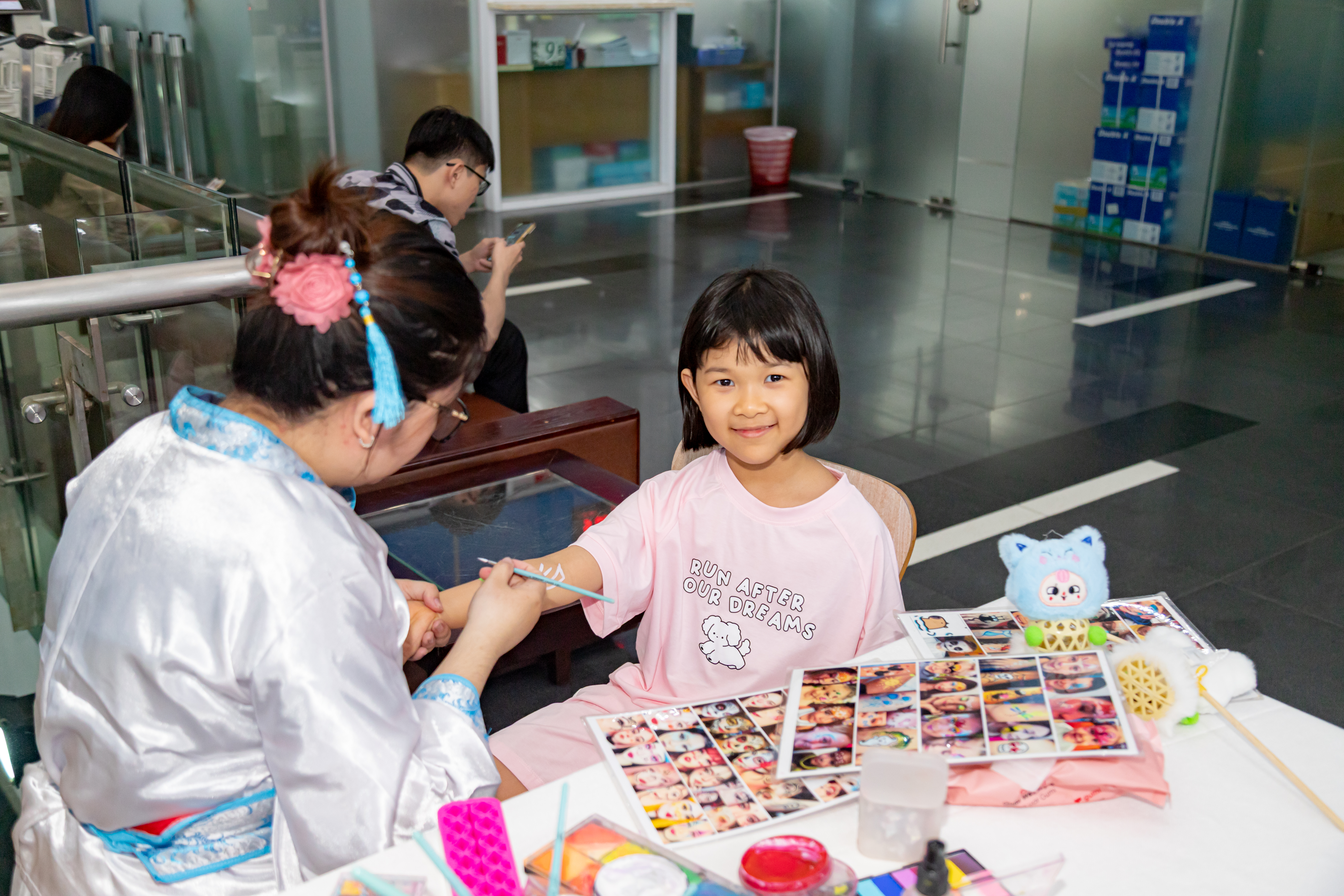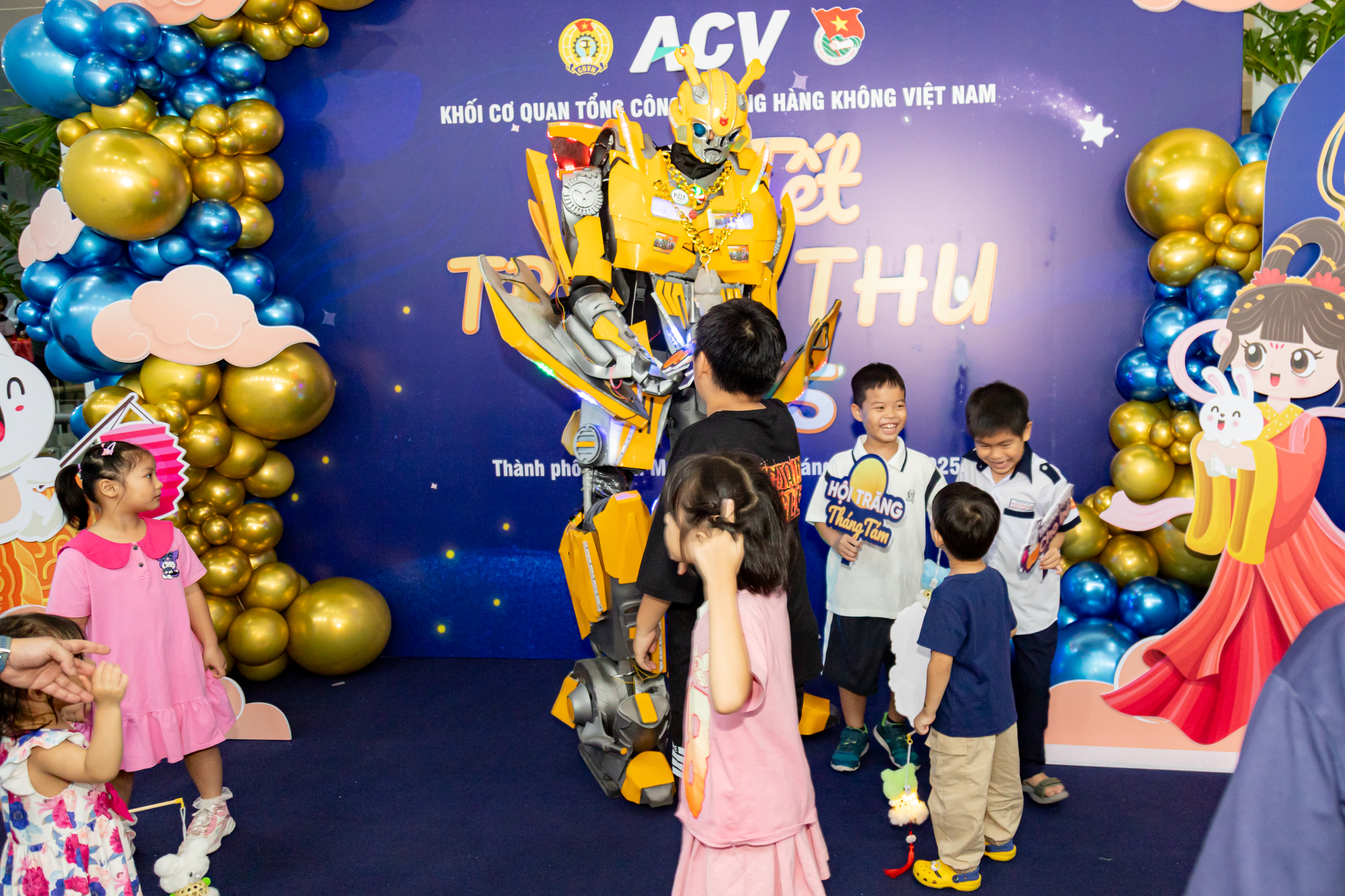 Chương trình được thiết kế với nhiều hoạt động hấp dẫn, kết hợp giữa nét truyền thống và hiện đại. Tại sảnh, ngay khi vừa đến, các bé đã vô cùng thích thú khi được check-in với robot khổng lồ vô cùng độc đáo, tạo nên những bức hình kỷ niệm ấn tượng. Các gian hàng trò chơi dân gian đầy màu sắc như ném vòng, tô tượng, tranh cát và làm quạt cũng thu hút đông đảo các em tham gia. Tiếng cười, tiếng reo hò hòa cùng tiếng nhạc rộn ràng đã khuấy động cả không gian tạo nên một bầu không khí lễ hội tưng bừng và náo nhiệt.
